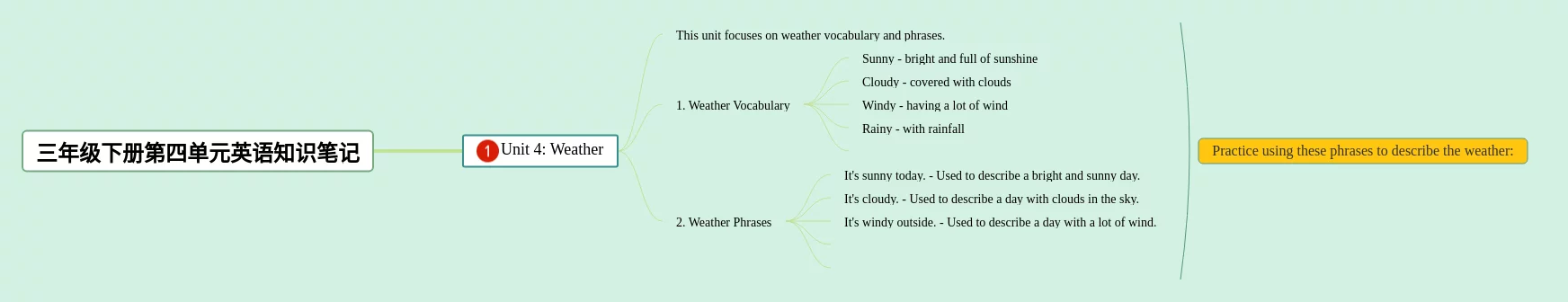三年级下册第四单元英语思维导图简单又漂亮(23张高清晰可打印)