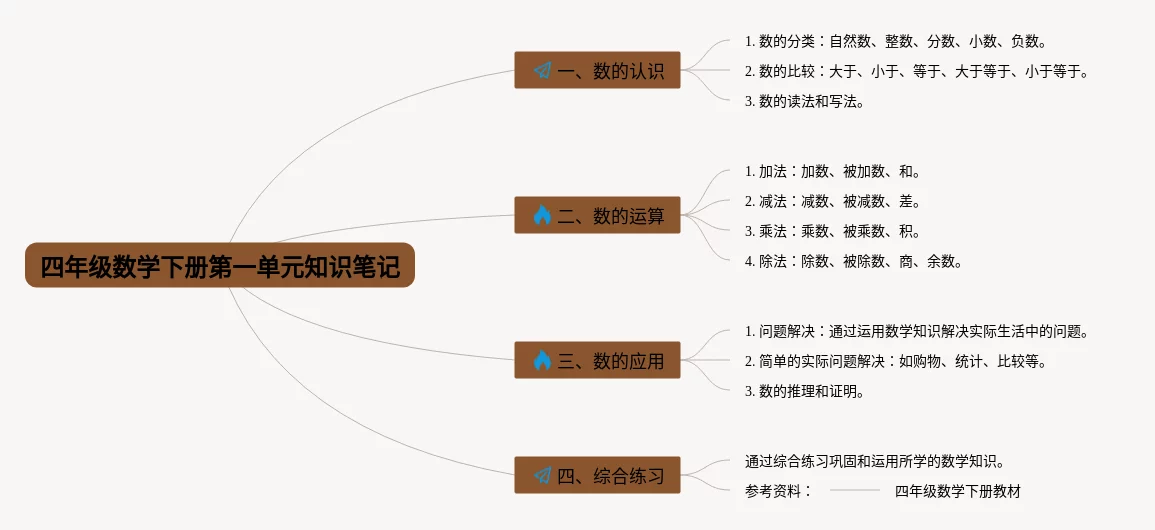 四年级数学下册第一单元思维导图(20张可打印)