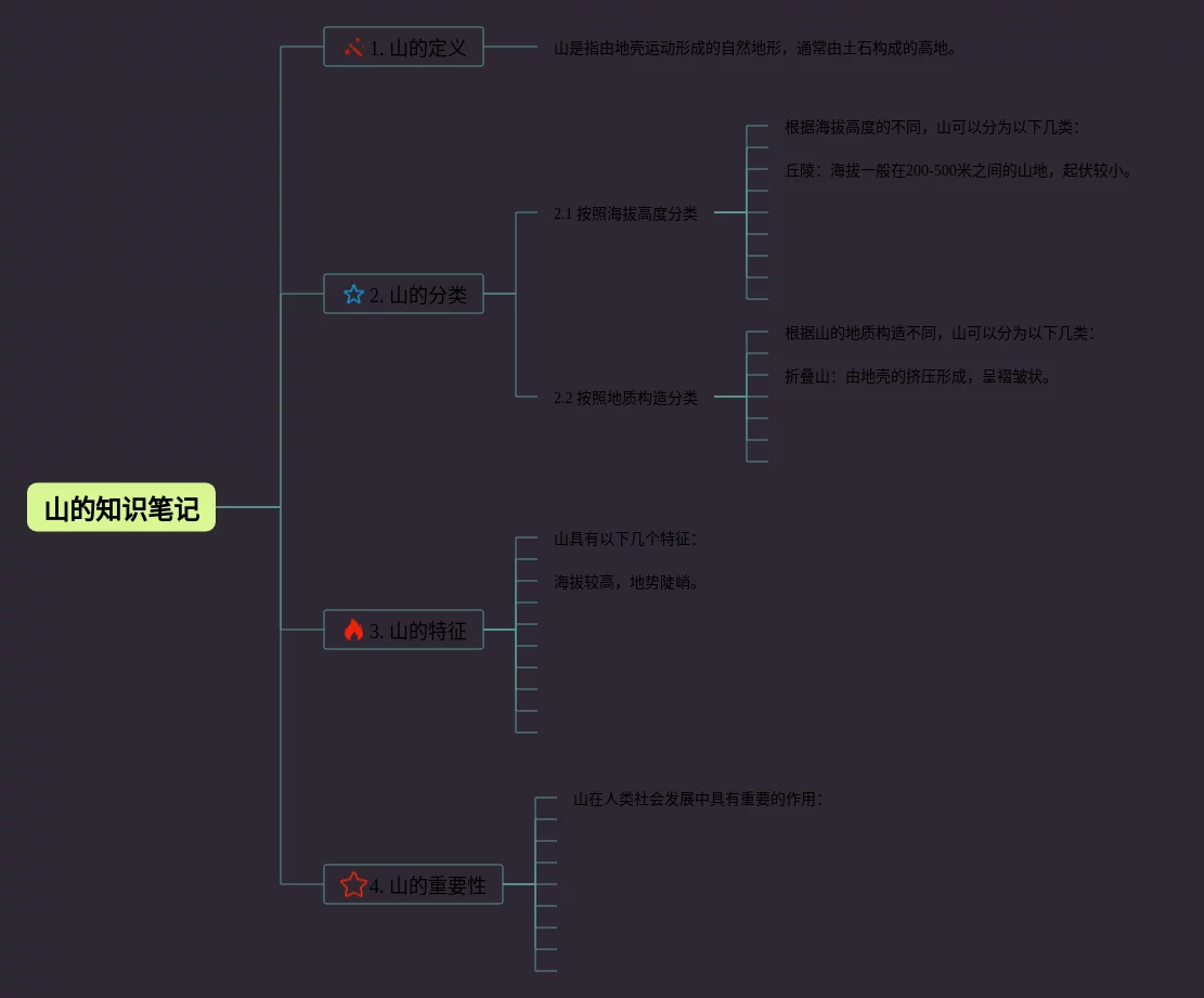 24张平顶山思维导图汇总,平顶山思维导图,内容涵盖1. 山的定义、2. 山的分类、3. 山的特征、4. 山的重要性等4个方面,24张附打印高清版,每张思维导图都非常漂亮,每张图片均附打印高清版。