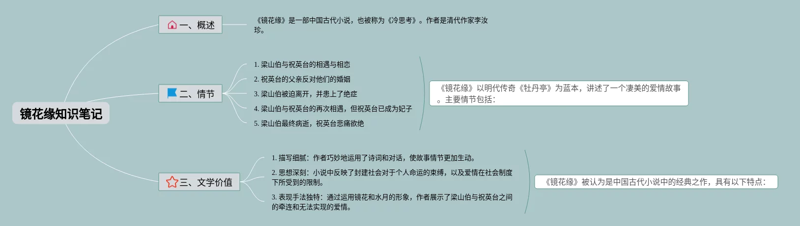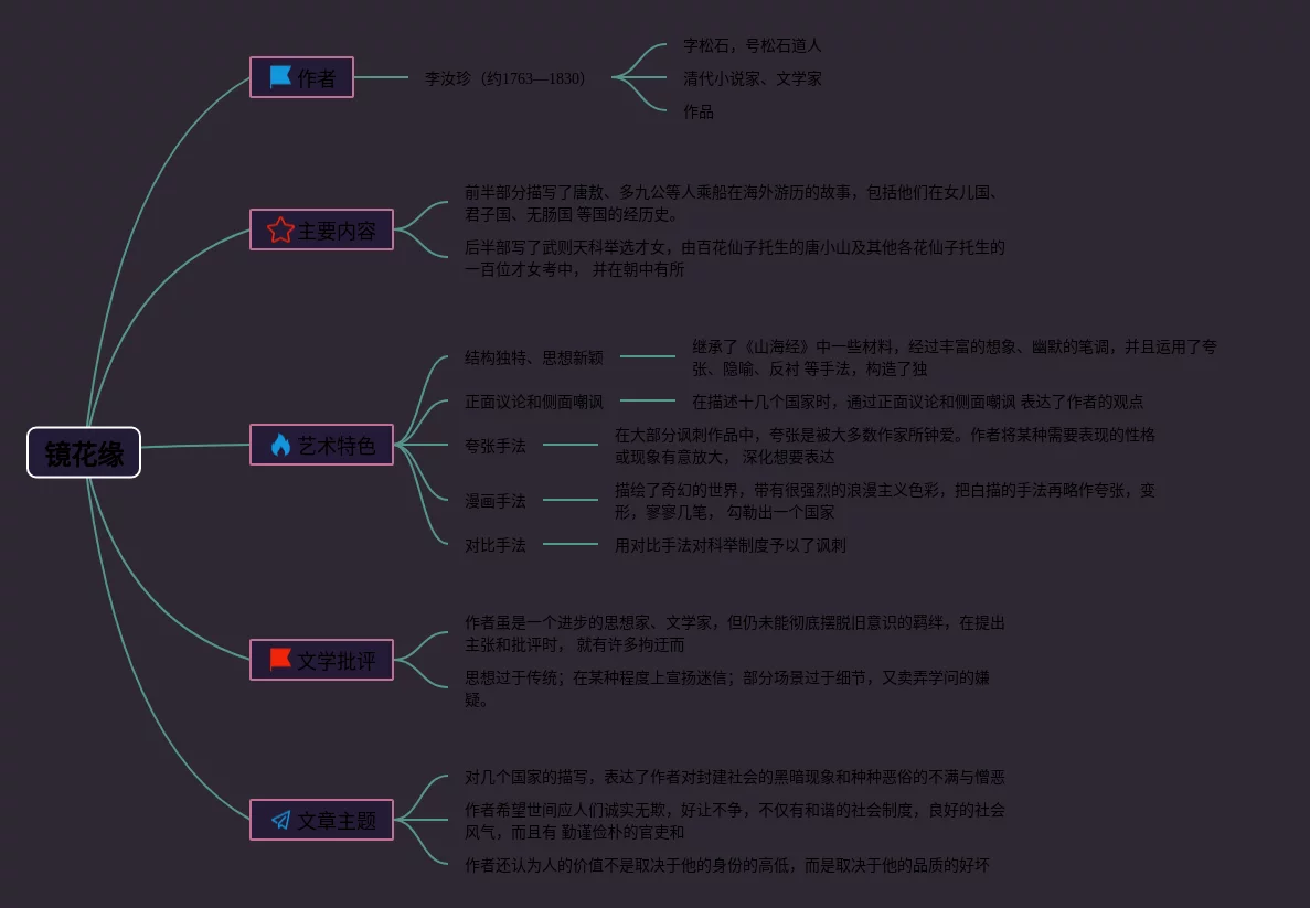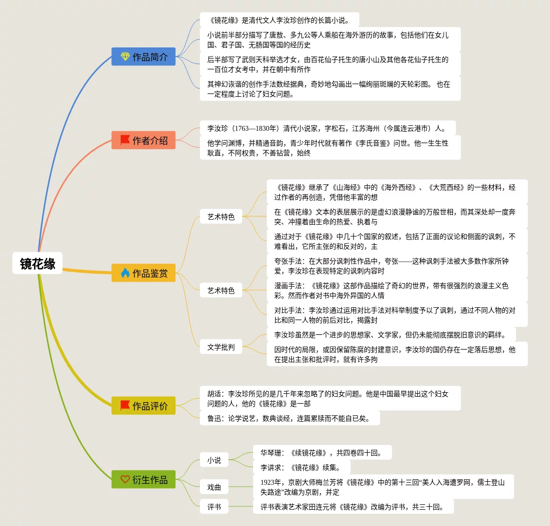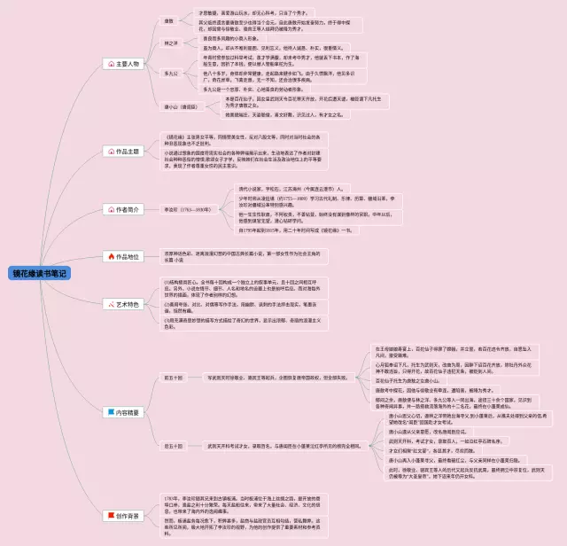 23张镜花缘的思维导图清晰汇总,镜花缘的思维导图清晰,内容涵盖作者、主要内容、艺术特色、文学批评、文章主题等5个部分,23张高清晰可打印,每张思维导图都非常漂亮,每张图片均高清晰可打印。