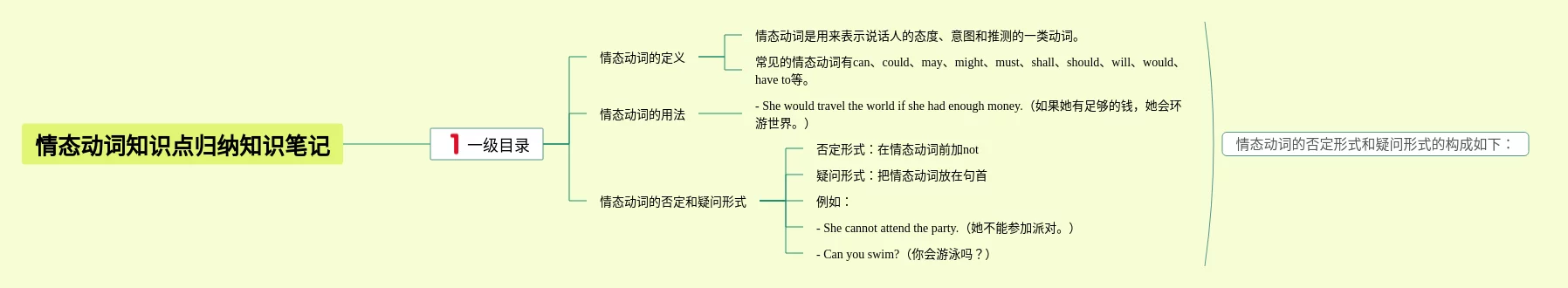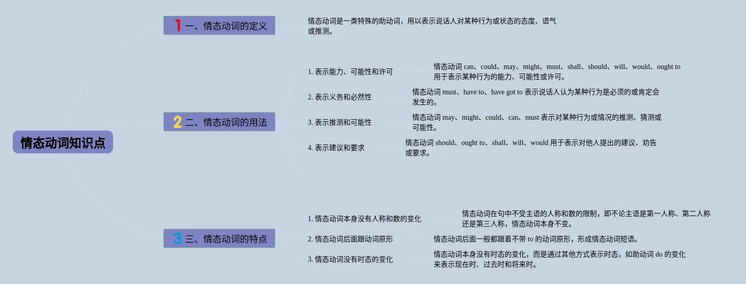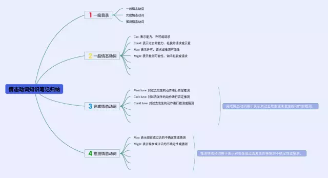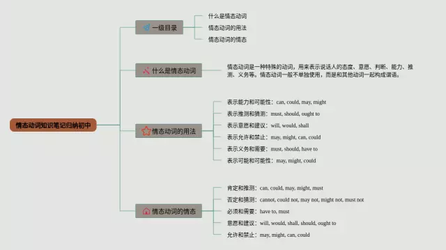 23张情态动词思维导图归纳初中汇总,情态动词思维导图归纳初中,内容涵盖一级目录、情态动词定义、情态动词的用法、情态动词的例句等4个方面,23张附下载,每张思维导图都非常清晰,每张图片均附下载。