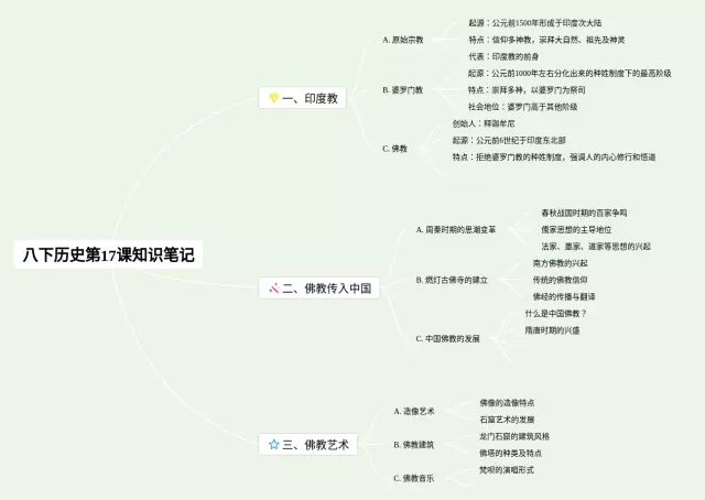 25张语文八下17课思维导图合集,语文八下17课思维导图,内容涵盖教的传播与分化、南亚的教、中国的教等3个部分,25张值得收藏,每张思维导图都非常漂亮,每张图片均值得收藏。