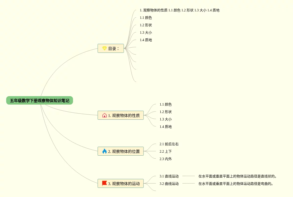 21张五年级数学观察物体思维导图合集,五年级数学观察物体思维导图,内容涵盖目录、1. 观察物体的性质、2. 观察物体的位置、3. 观察物体的运动等4个知识点,21张附打印高清版,每张思维导图都非常清晰,每张图片均附打印高清版。
