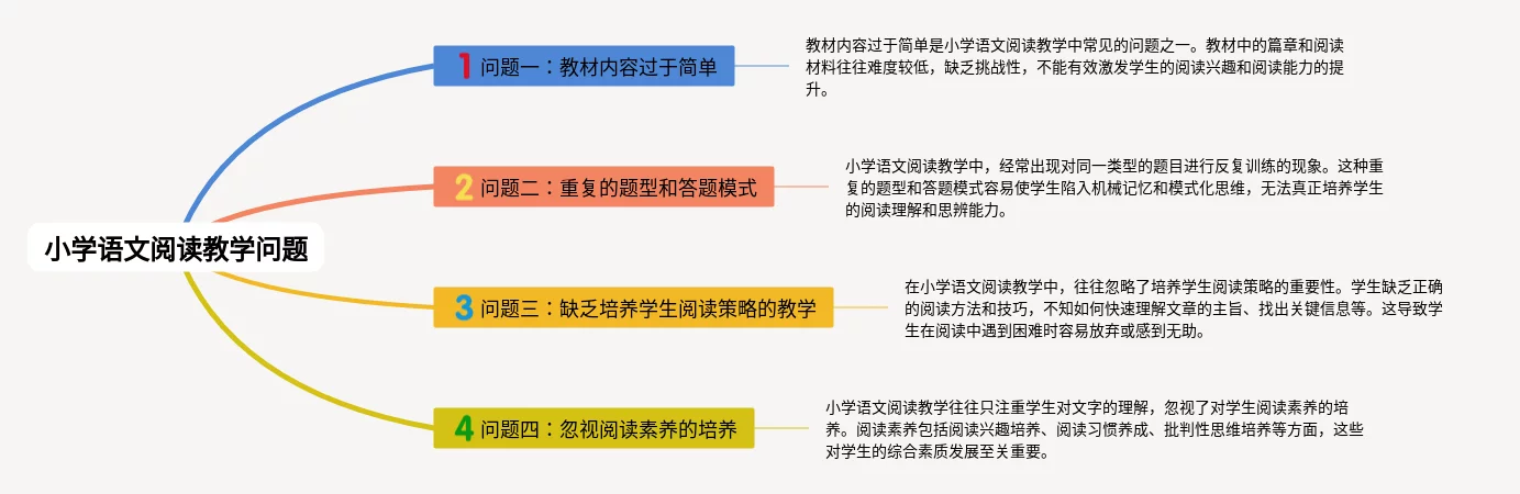 24张思维导图在阅读教学中的作用汇总,思维导图在阅读教学中的作用,内容涵盖问题教材内容过于简单、问题重复的题型和答题模式、问题忽视阅读素养的培养等3个部分,24张可打印,每张思维导图都非常漂亮,每张图片均可打印。