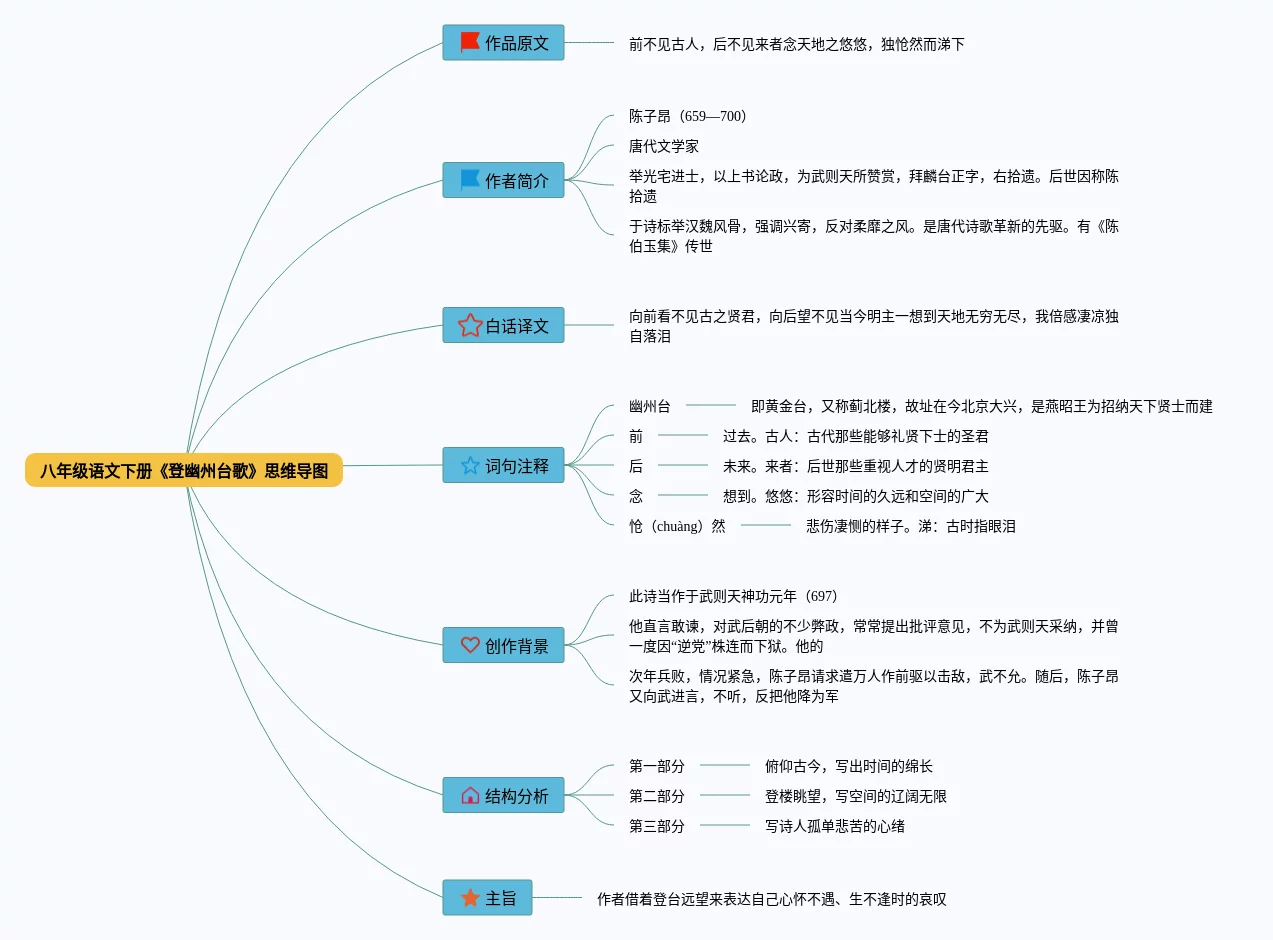 21张登幽州台歌 思维导图合集,登幽州台歌 思维导图,内容涵盖登幽州台歌、望岳等2个方面,21张附下载,每张思维导图都非常清晰,每张图片均附下载。