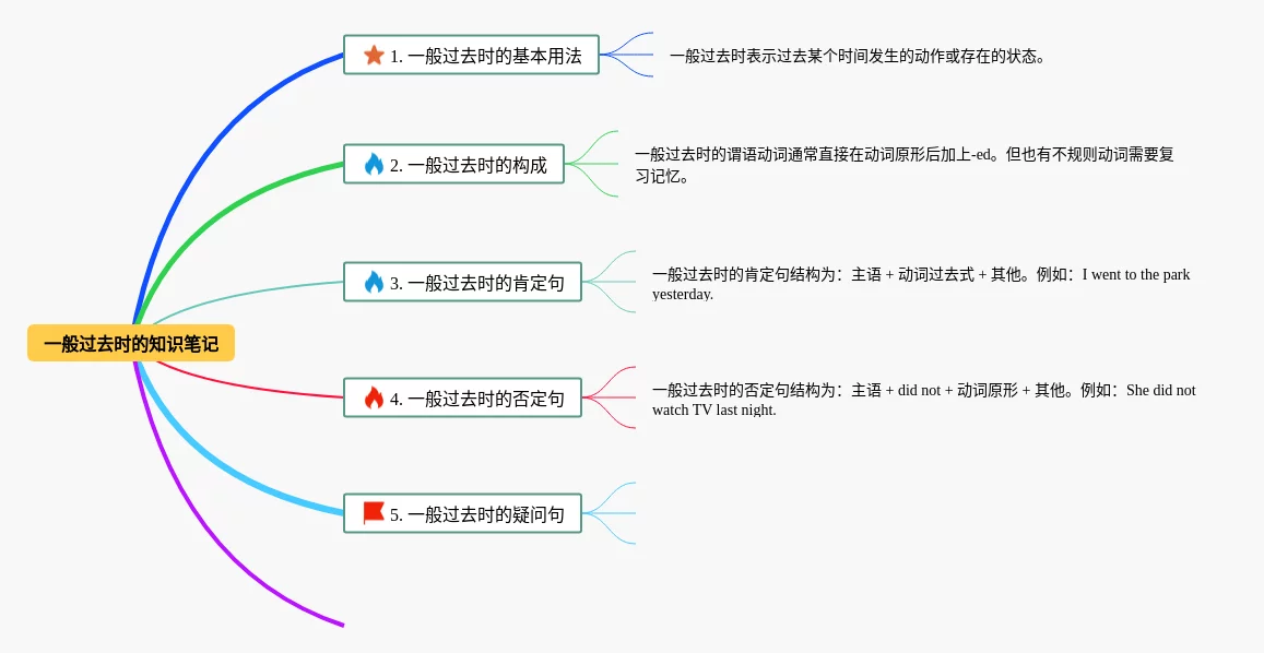 25张四年级英语一般过去时的思维导图合集,四年级英语一般过去时的思维导图,内容涵盖No.1结构、No.3定义、No.5时间状语、No.6位移动词等4个部分,25张可打印,每张思维导图都非常漂亮,每张图片均可打印。