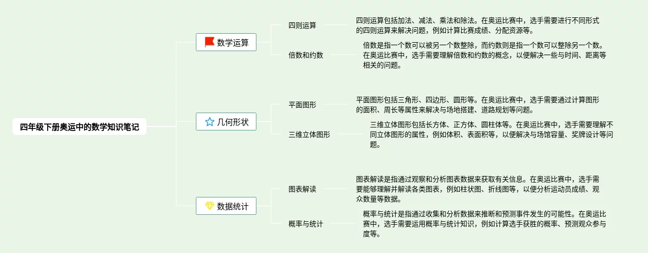 23张四年级下册奥运中的数学思维导图汇总,四年级下册奥运中的数学思维导图,内容涵盖等0个要点,23张附下载,每张思维导图都非常简单,每张图片均附下载。