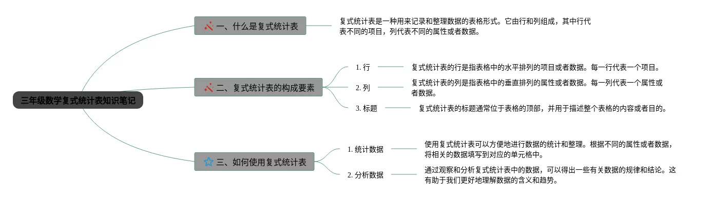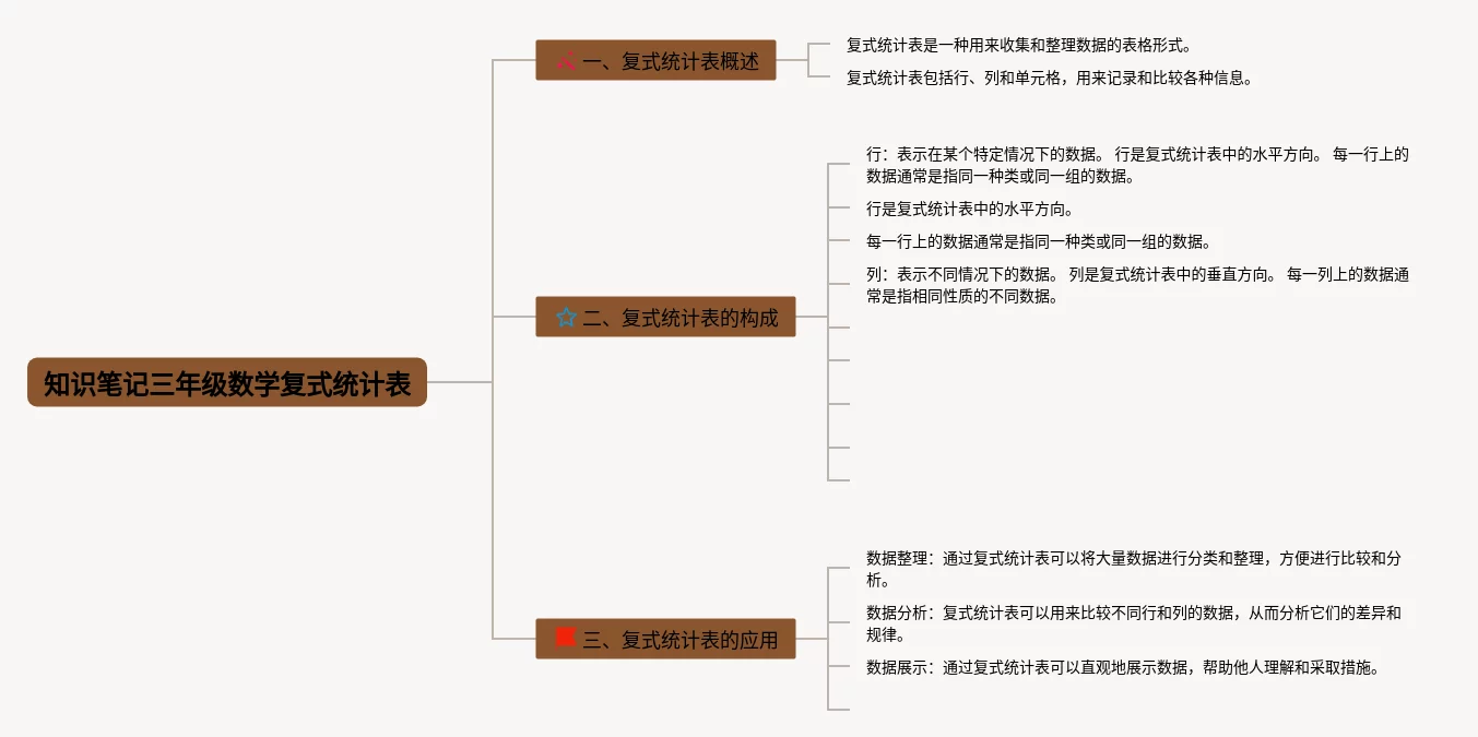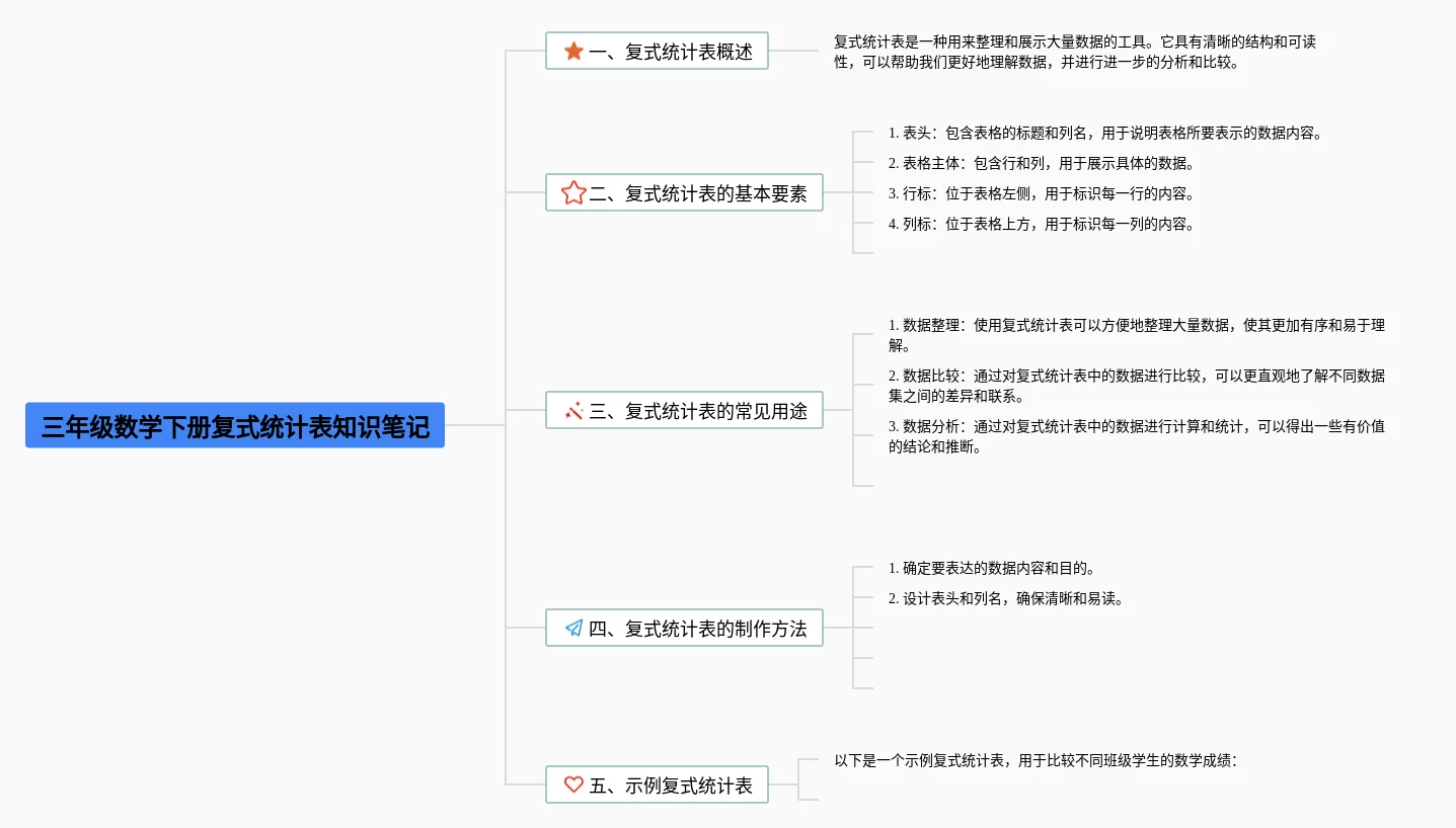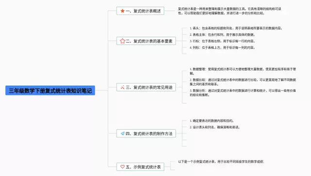 25张三年级数学下册第三单元复式统计表思维导图合集,三年级数学下册第三单元复式统计表思维导图,内容涵盖定义、制作方法等2个方面,25张附打印高清版,每张思维导图都非常漂亮,每张图片均附打印高清版。