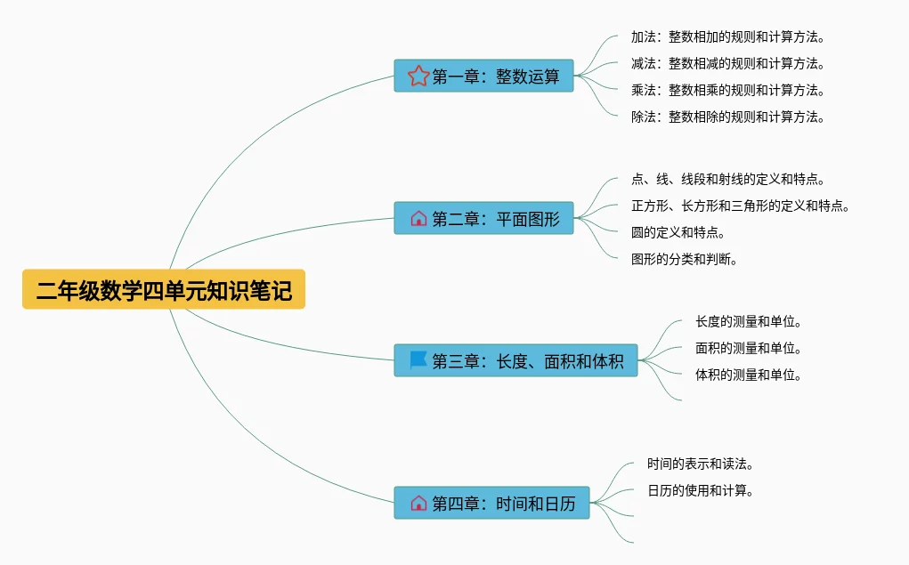 23张二年级下册数学四单元思维导图汇总,二年级下册数学四单元思维导图,内容涵盖表内乘法、角的初步认识、 表内除法、解决问题、有余数的除法等7个方面,23张可打印,每张思维导图都非常漂亮,每张图片均可打印。