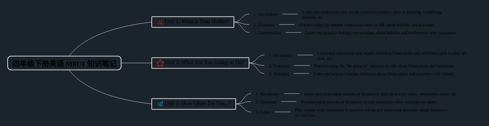英语下册四年级m10u1思维导图(24张值得收藏)