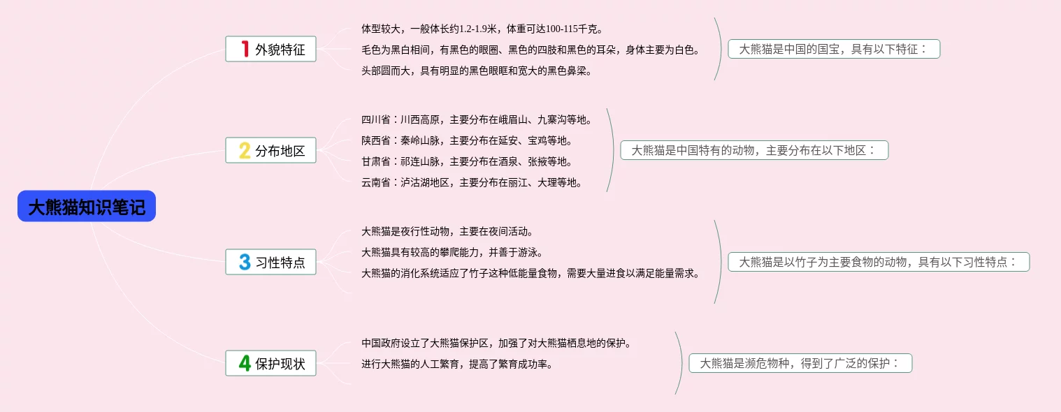 20张大熊猫思维导图怎么写合集,大熊猫思维导图怎么写,内容涵盖新闻、熊猫外交的发展历程、我国大熊猫的现状、外国租界我国大熊猫的条件、租金用于大熊猫的保育工作等5个知识点,20张可打印,每张思维导图都非常清晰,每张图片均可打印。