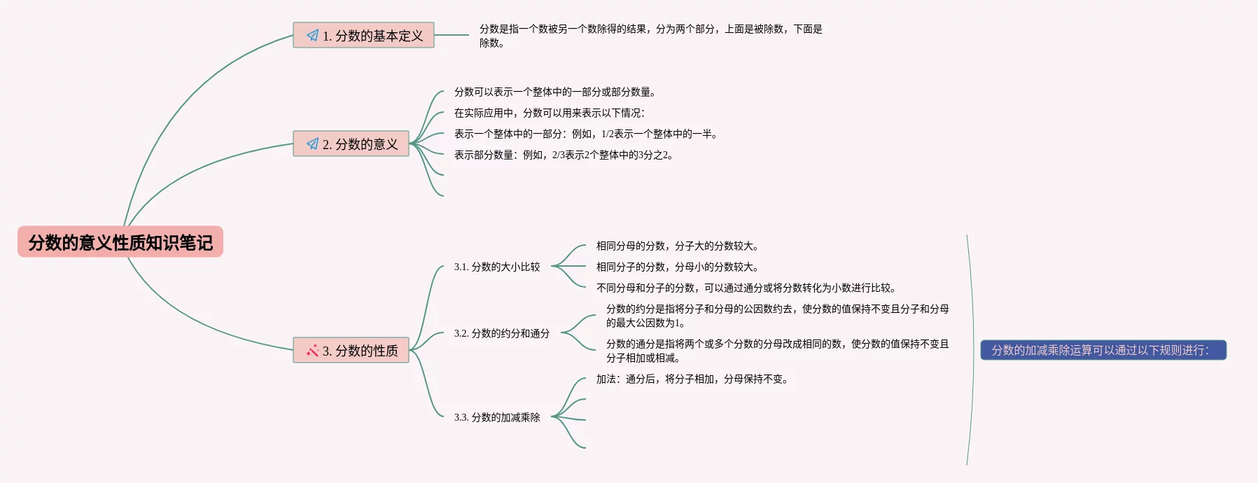 24张分数意义与性质的思维导图汇总,分数意义与性质的思维导图,内容涵盖1. 分数的意义、2. 真分数和假分数、3. 分数的基本性质、4. 约分、5. 通分等6个部分,24张高清晰可打印,每张思维导图都非常简单,每张图片均高清晰可打印。