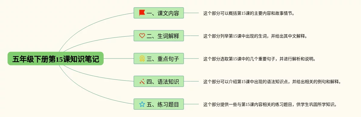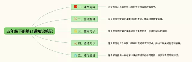 24张四年级下册15课思维导图合集,四年级下册15课思维导图,内容涵盖课文内容、生词解释、重点句子、语法知识、练习题目等5个要点,24张附下载,每张思维导图都非常漂亮,每张图片均附下载。