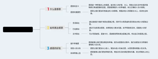 22张关于感恩的思维导图汇总,关于感恩的思维导图,内容涵盖什么是感恩、如何表达感恩、感恩的好处等3个部分,22张可打印,每张思维导图都非常漂亮,每张图片均可打印。