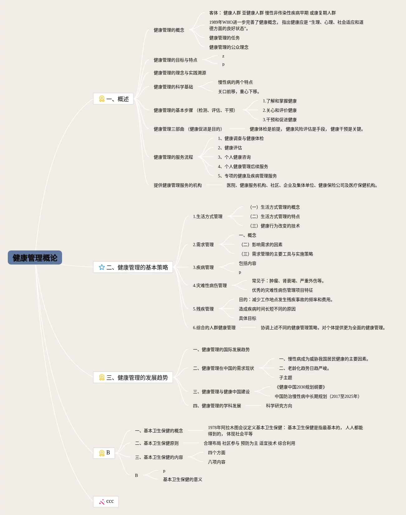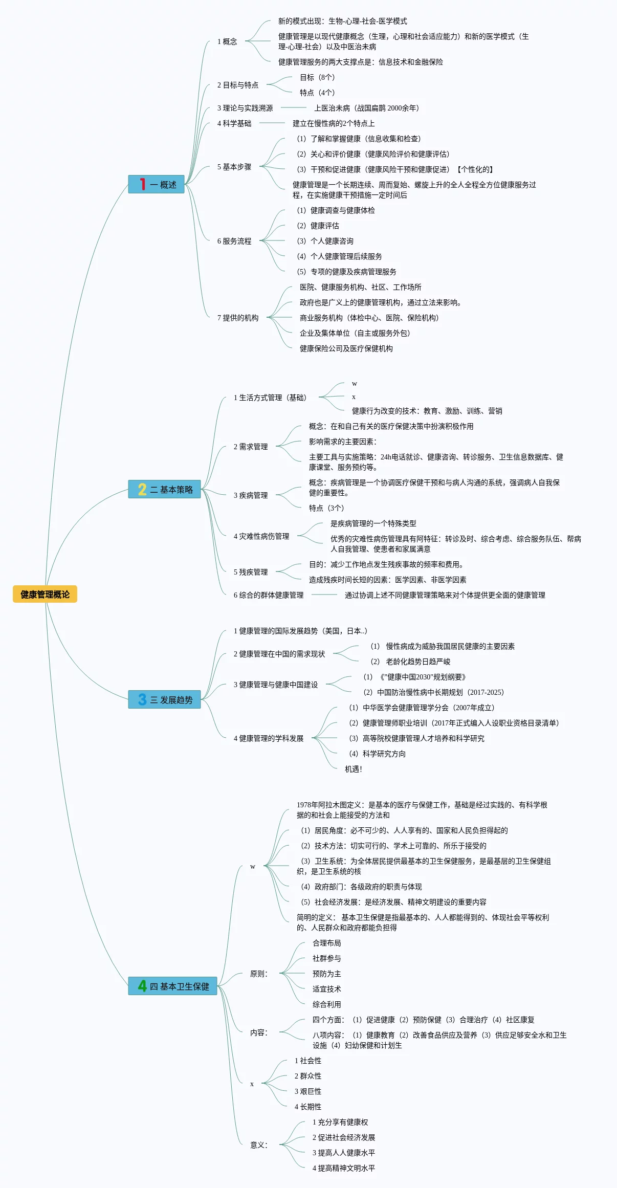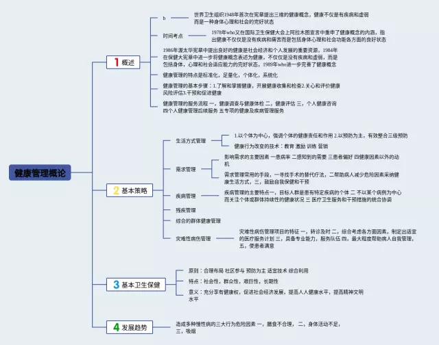 22康管理思维导图汇总,健康管理思维导图,内容涵盖第1节 概述、第2节 健康管理的基本策略、第3节 健康管理的发展趋势、第4节 基本卫生保健PHC等4个知识点,22张附打印高清版,每张思维导图都非常简单,每张图片均附打印高清版。