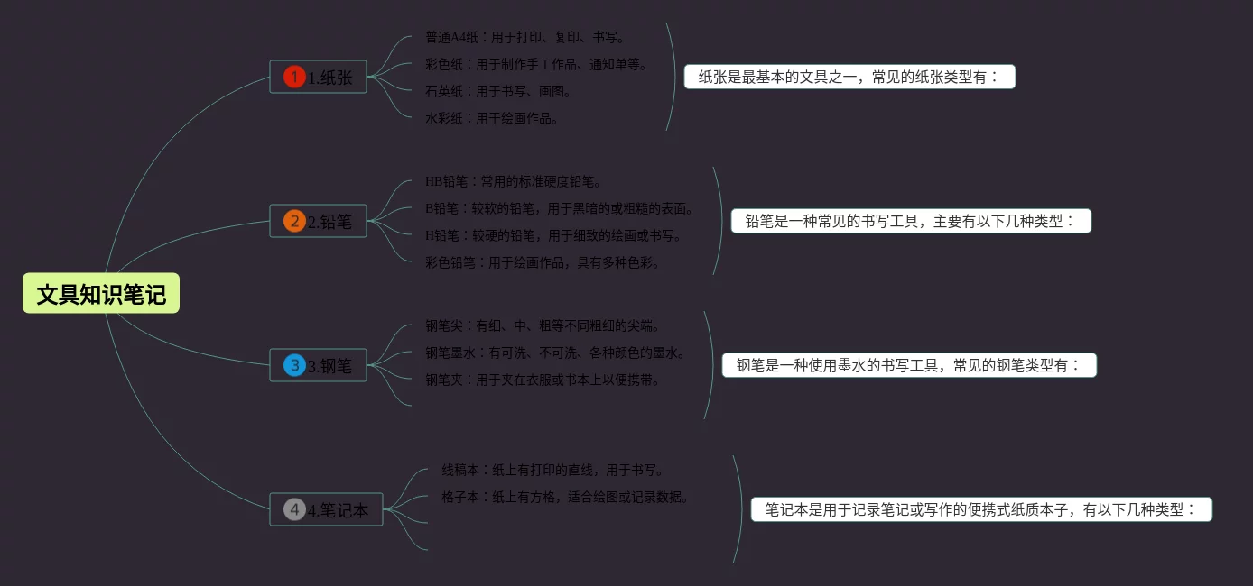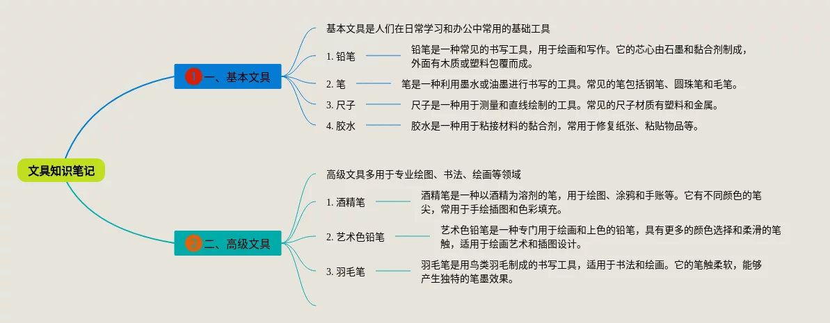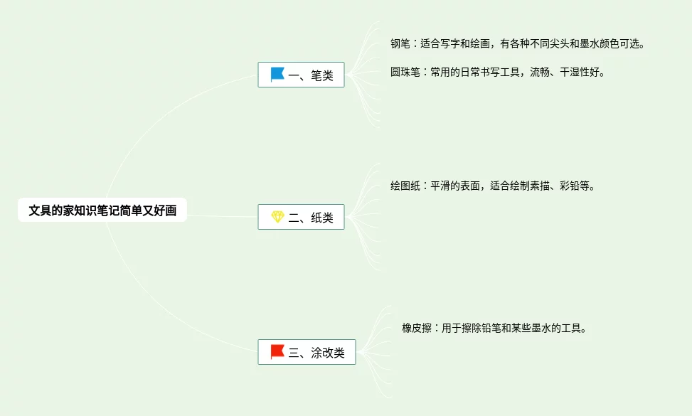 23张文具的思维导图怎么画汇总,文具的思维导图怎么画,内容涵盖笔类、纸类、涂改类等3个要点,23张高清版,每张思维导图都非常漂亮,每张图片均高清版。