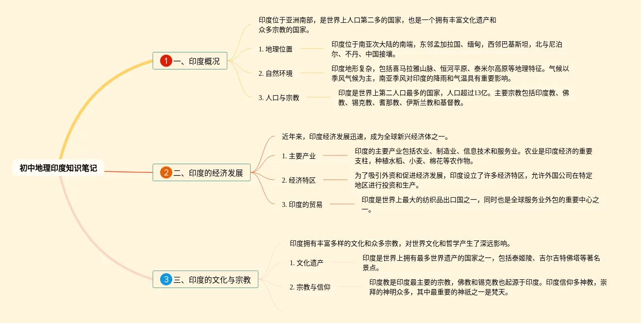 20张初中地理印度思维导图汇总,初中地理印度思维导图,内容涵盖半球位置、海陆位置、纬度位置、邻国、地形等11个方面,20张值得收藏,每张思维导图都非常漂亮,每张图片均值得收藏。