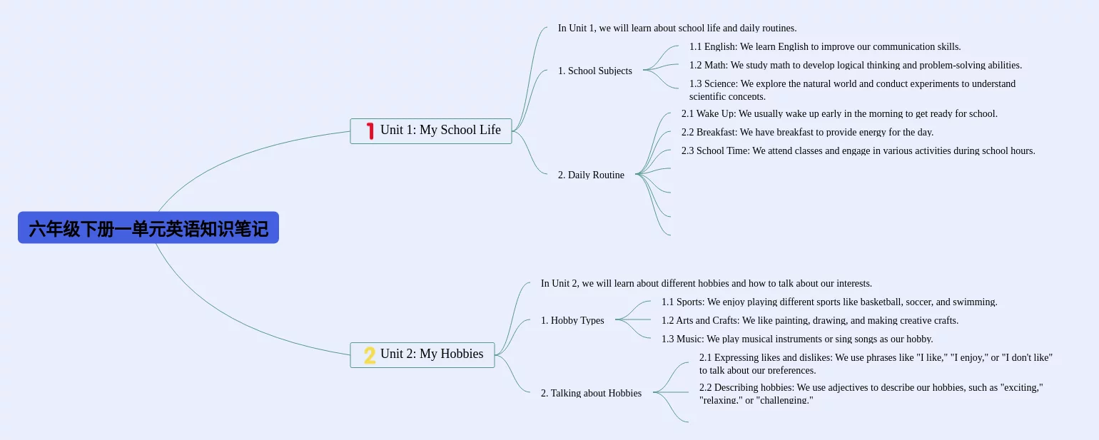 六年级下册一单元英语思维导图(21张精选版)