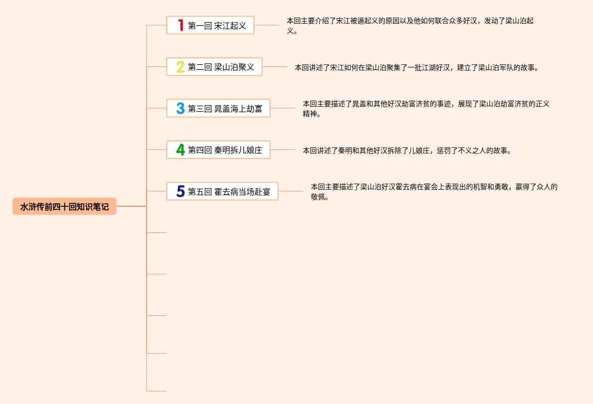 24张水浒传前四十回思维导图合集,水浒传前四十回思维导图,内容涵盖目录、第一回、第二回、第三回等4个知识点,24张高清晰可打印,每张思维导图都非常漂亮,每张图片均高清晰可打印。