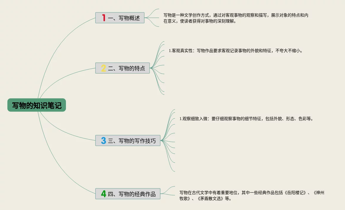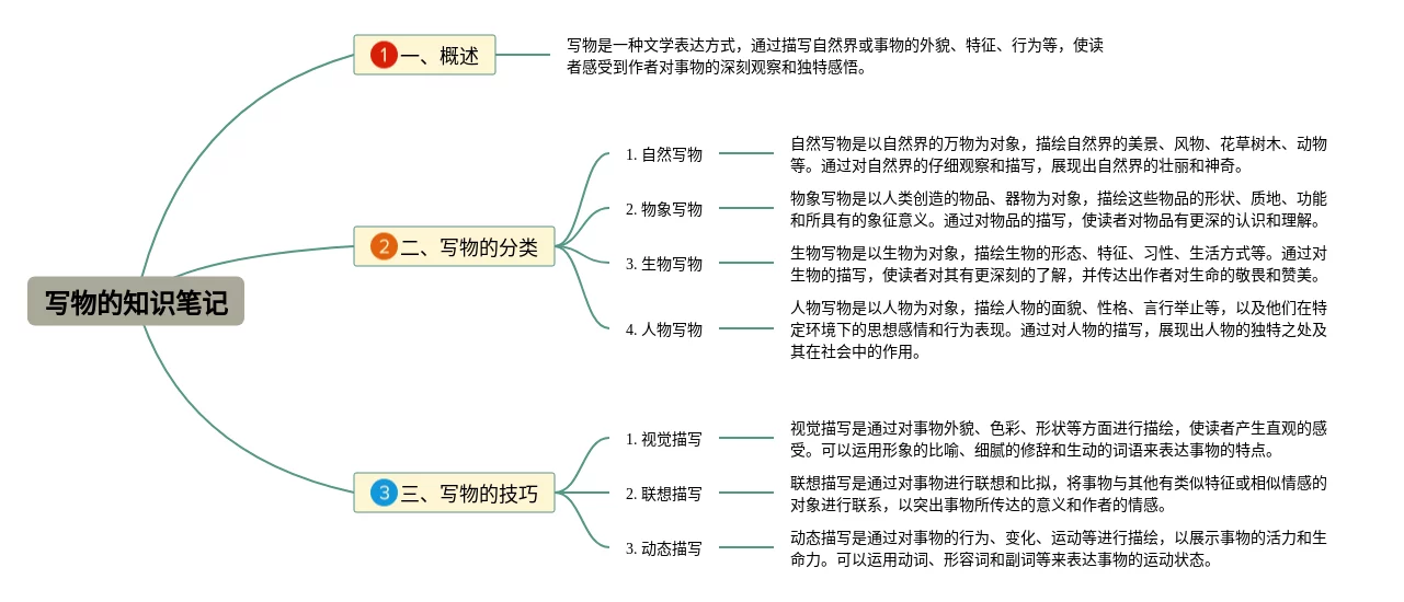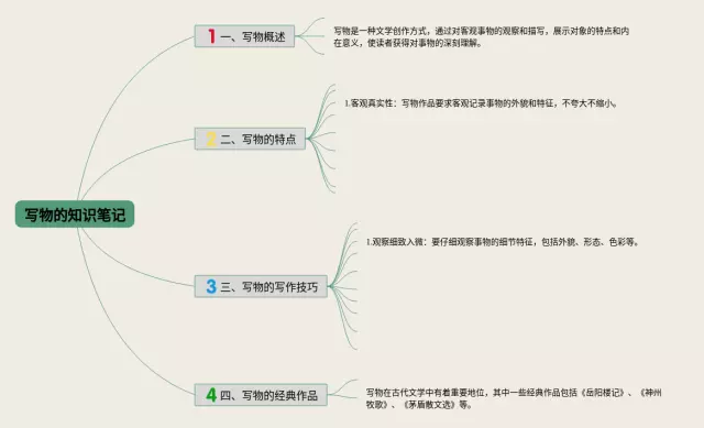 21张写物的思维导图汇总,写物的思维导图,内容涵盖写物概述、写物的特点、写物的写作技巧、写物的经典作品等4个知识点,21张附打印高清版,每张思维导图都非常清晰,每张图片均附打印高清版。