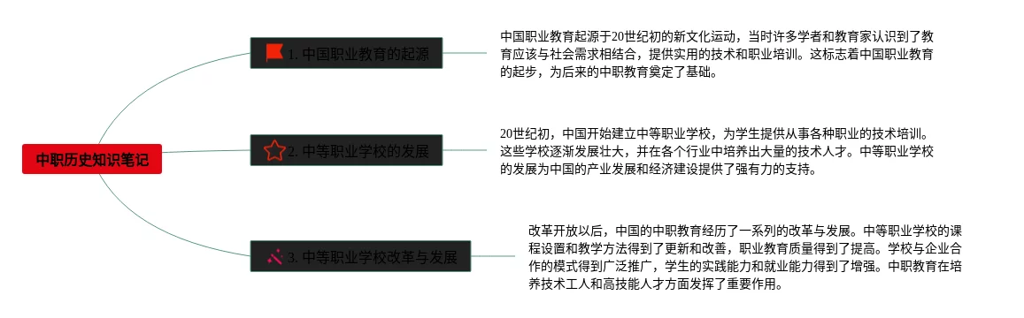 24张中职生数学思维导图合集,中职生数学思维导图,内容涵盖1. 中国职业教育的起源、2. 中等职业学校的发展、3. 中等职业学校改革与发展等3个要点,24张高清版,每张思维导图都非常清晰,每张图片均高清版。