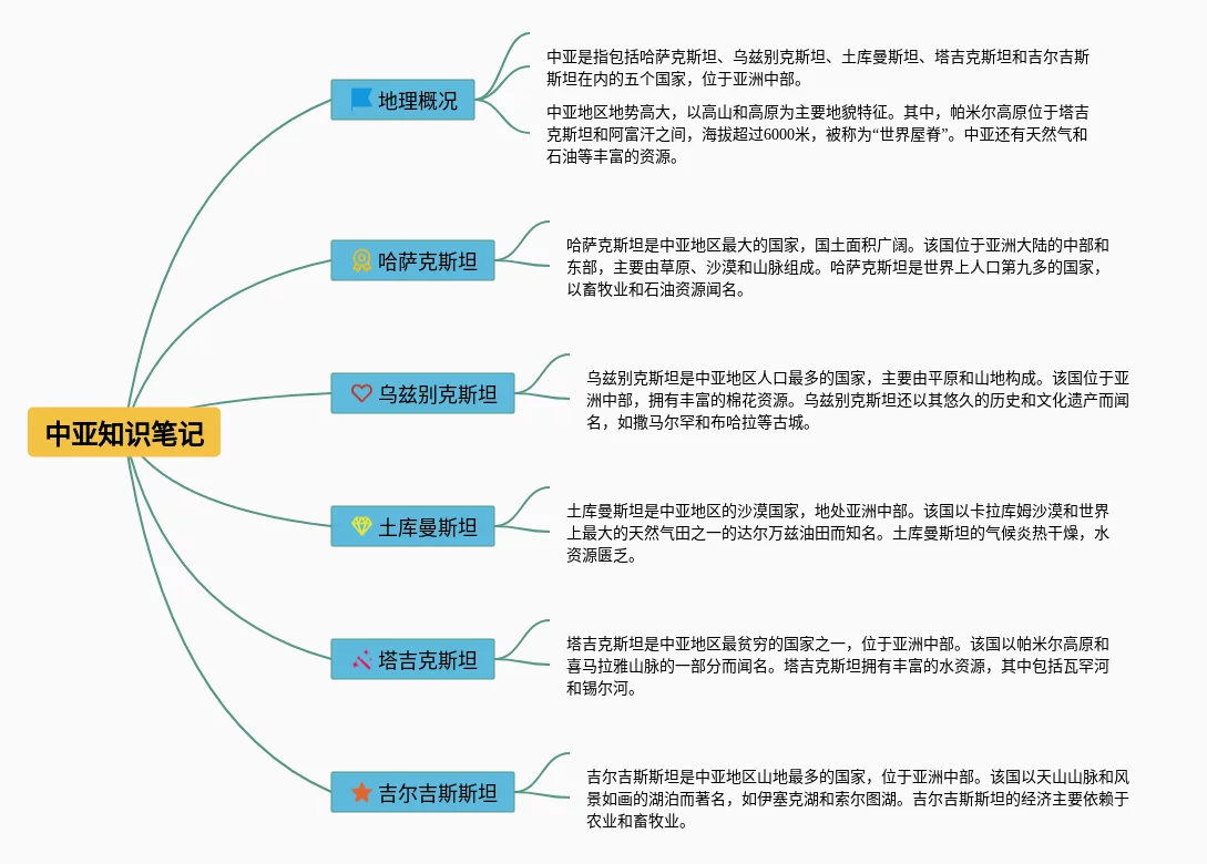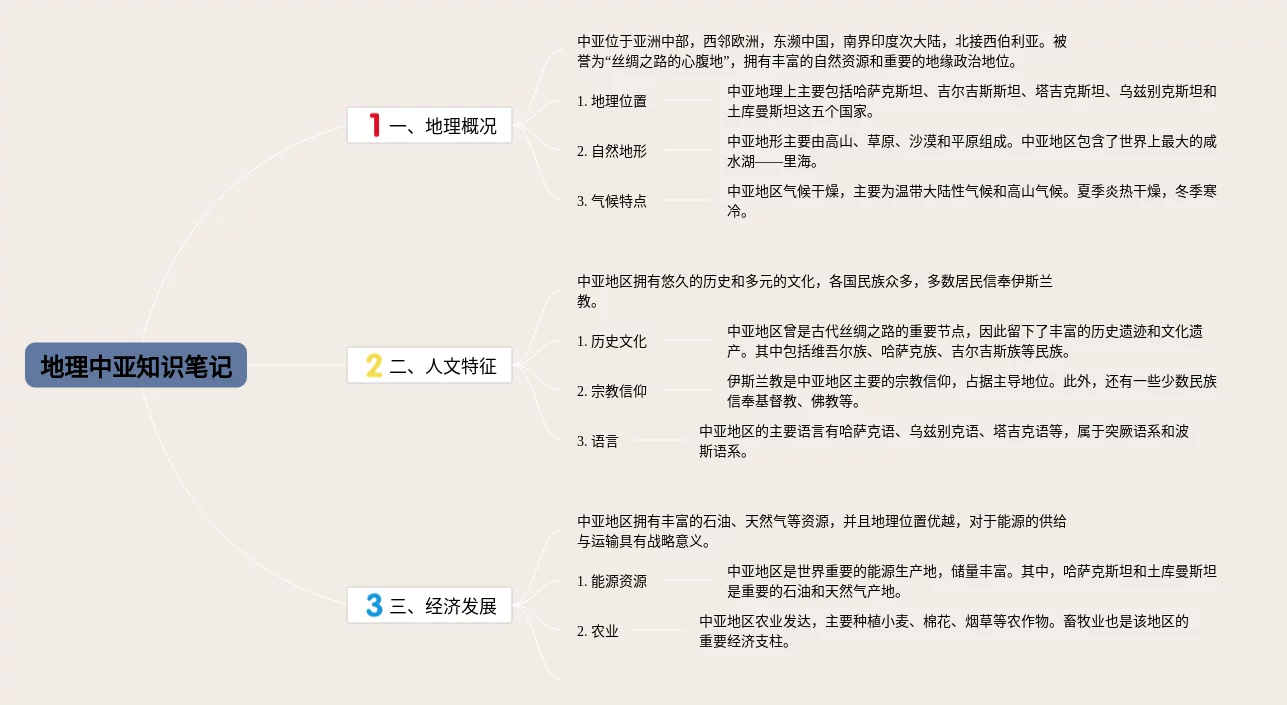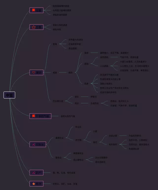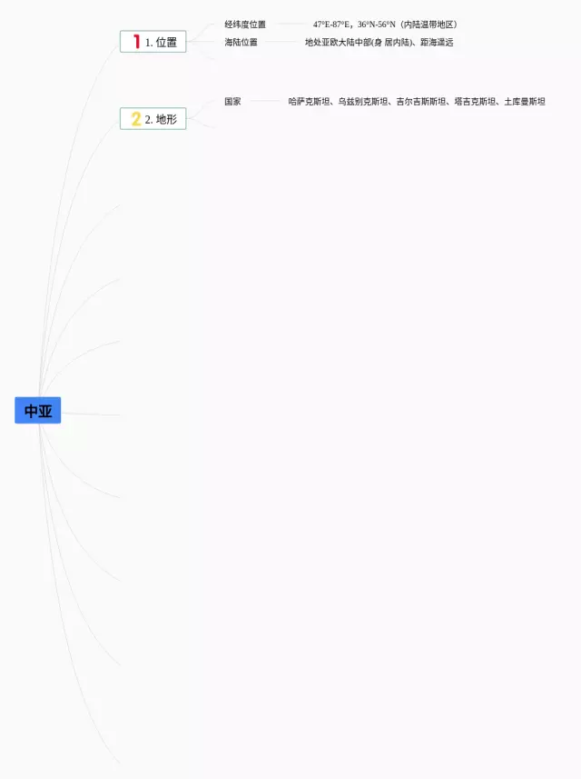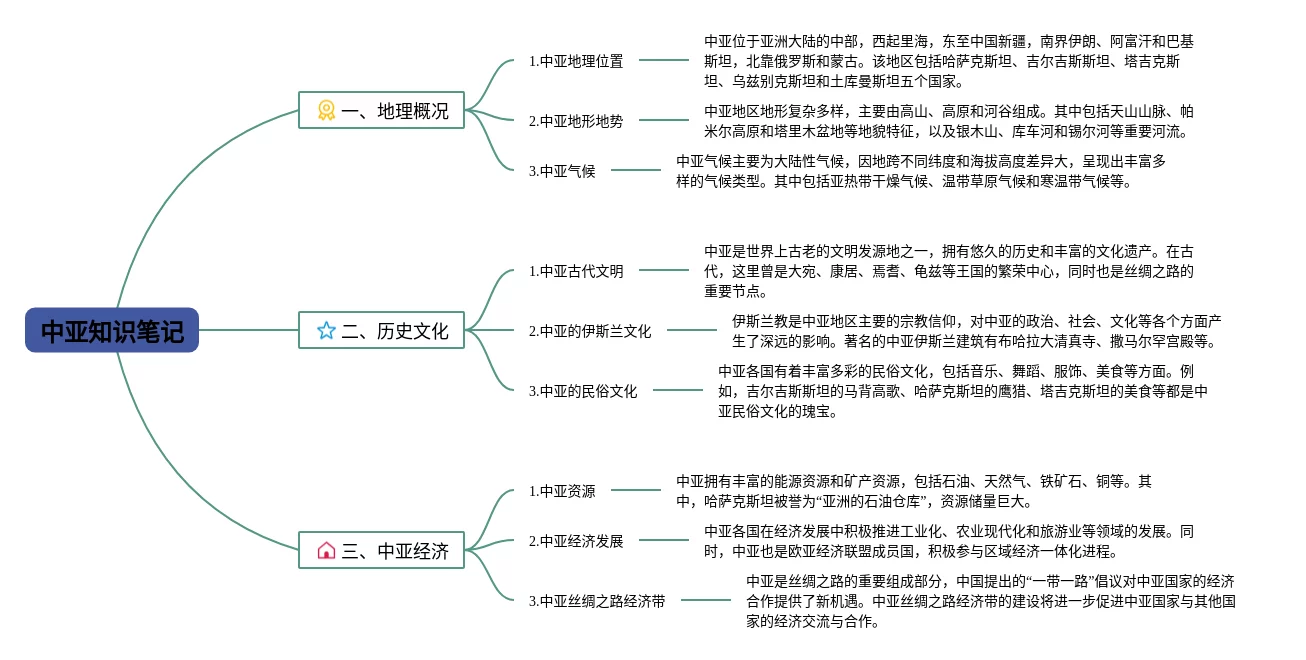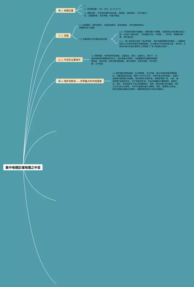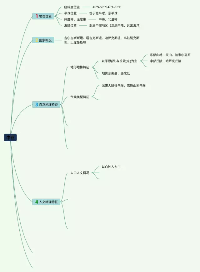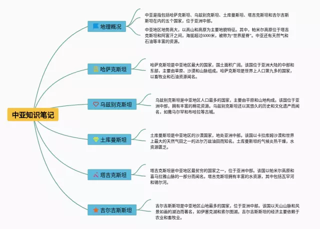 25张中亚思维导图高中地理汇总,中亚思维导图高中地理,内容涵盖人文特征、自然环境特征、探究、地理位置和范围等4个方面,25张高清版,每张思维导图都非常清晰,每张图片均高清版。