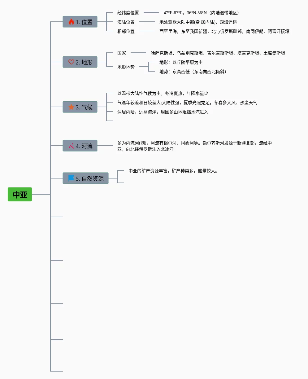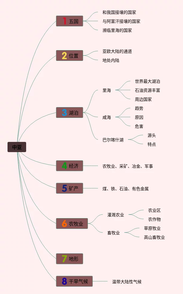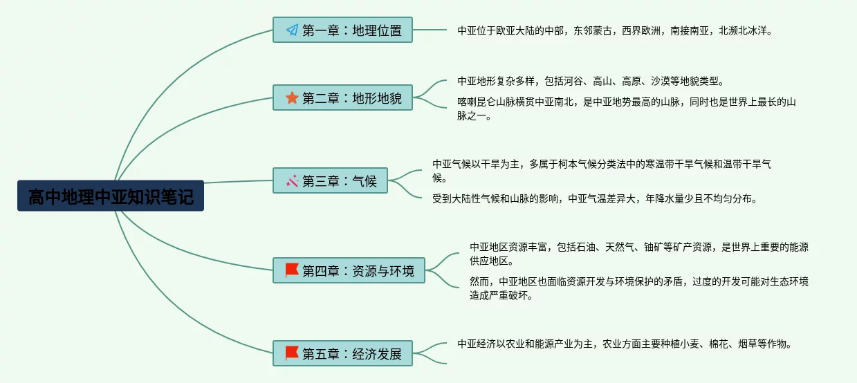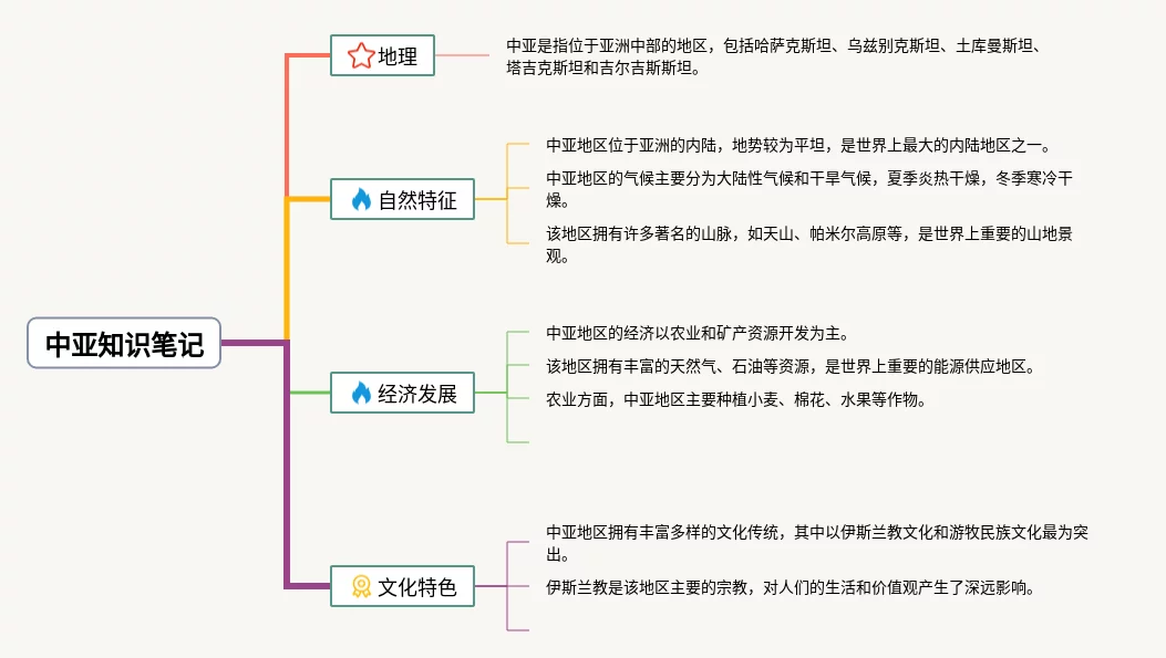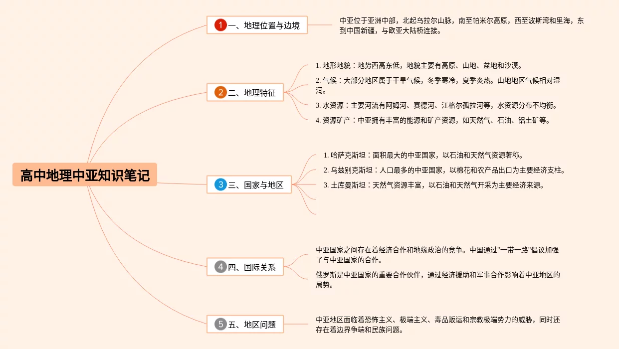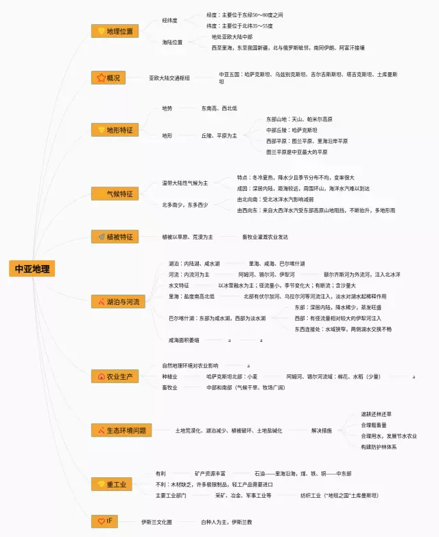 25张中亚思维导图高中地理汇总,中亚思维导图高中地理,内容涵盖人文特征、自然环境特征、探究、地理位置和范围等4个方面,25张高清版,每张思维导图都非常清晰,每张图片均高清版。
