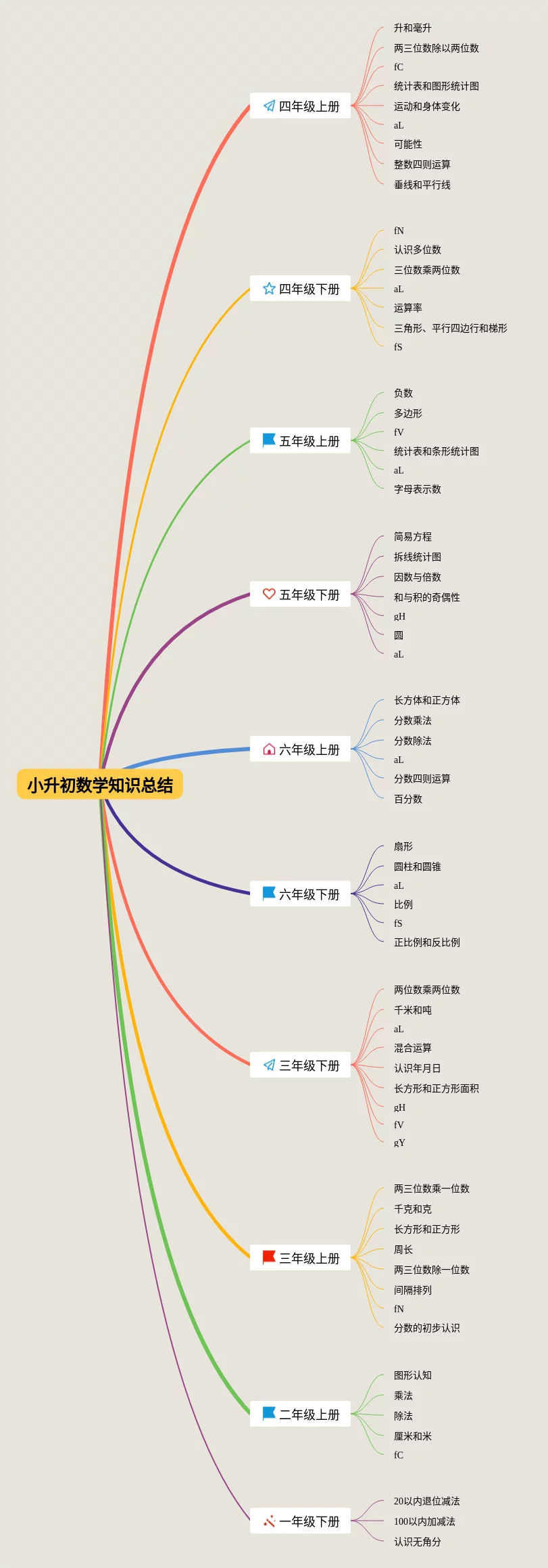 23张数学小升初思维导图汇总,数学小升初思维导图,内容涵盖四年级上册、四年级下册、五年级上册、五年级下册、六年级上册等12个方面,23张值得收藏,每张思维导图都非常漂亮,每张图片均值得收藏。