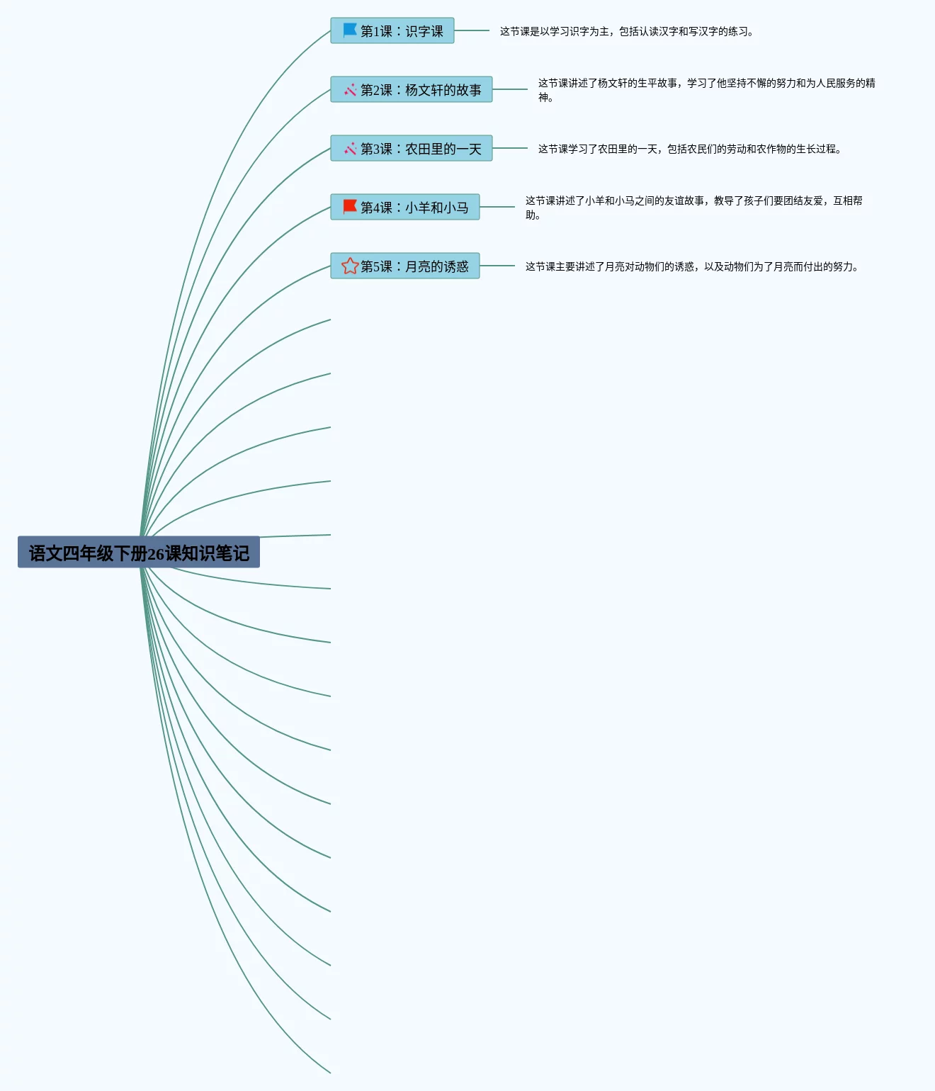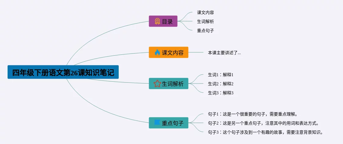 20张语文四年级下册26课思维导图汇总,语文四年级下册26课思维导图,内容涵盖第一节文言文阅读、第二节现代文阅读等2个知识点,20张精选版,每张思维导图都非常清晰,每张图片均精选版。