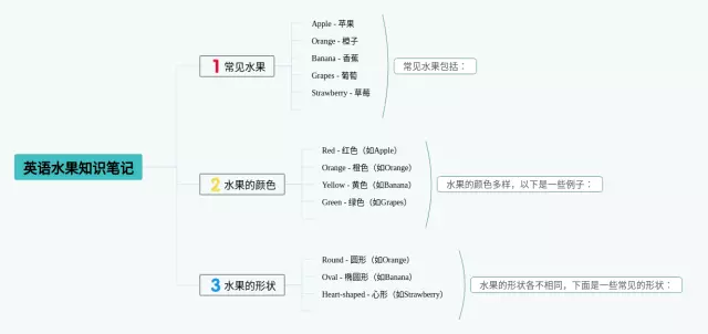25张水果英语思维导图怎么画汇总,水果英语思维导图怎么画,内容涵盖个人介绍、个人优势、山葵徒弟案例、背景痛点、商品属性的重要性和利处等7个方面,25张高清晰可打印,每张思维导图都非常清晰,每张图片均高清晰可打印。
