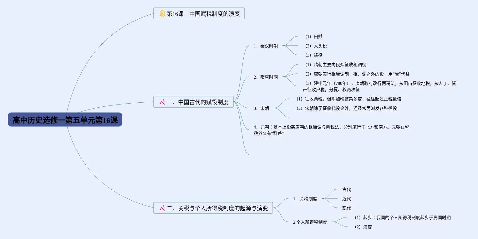 高中必修一第16课思维导图合集,高中历史必修一第16课思维导图,内容涵盖第16课 中国赋税制度的演变、中国古代的赋役制度等2个知识点,25张高清晰可打印,每张思维导图都非常漂亮,每张图片均高清晰可打印。