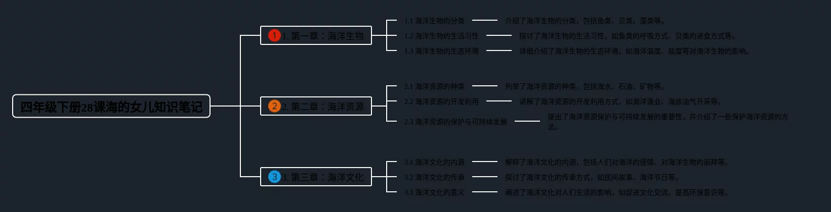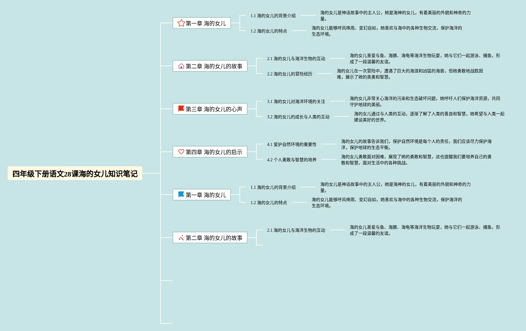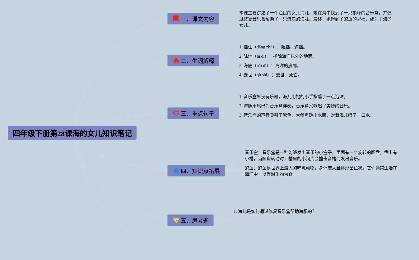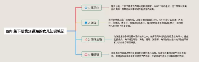 21张语文四年级下册28课海的女儿思维导图汇总,语文四年级下册28课海的女儿思维导图,内容涵盖1. 塞舌尔、2. 海洋、3. 海洋生物、4. 珊瑚礁等4个要点,21张值得收藏,每张思维导图都非常简单,每张图片均值得收藏。