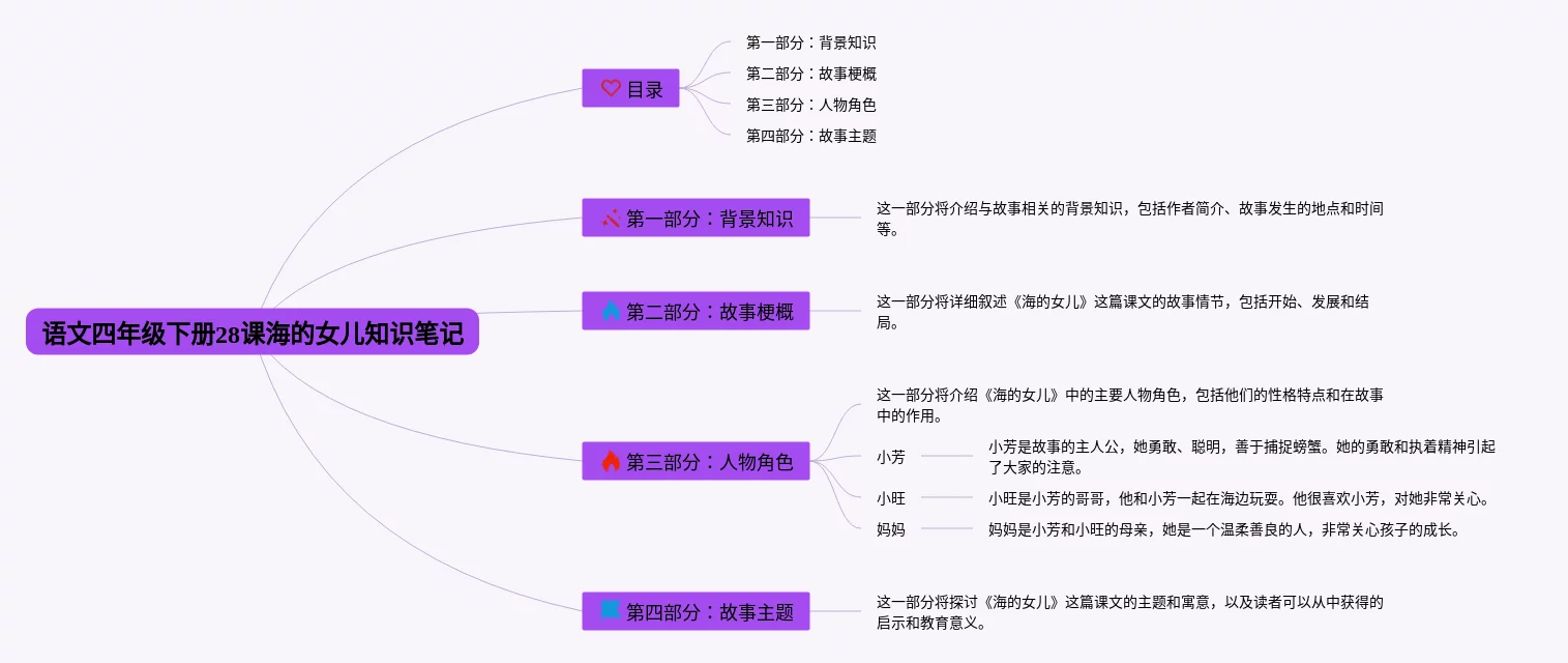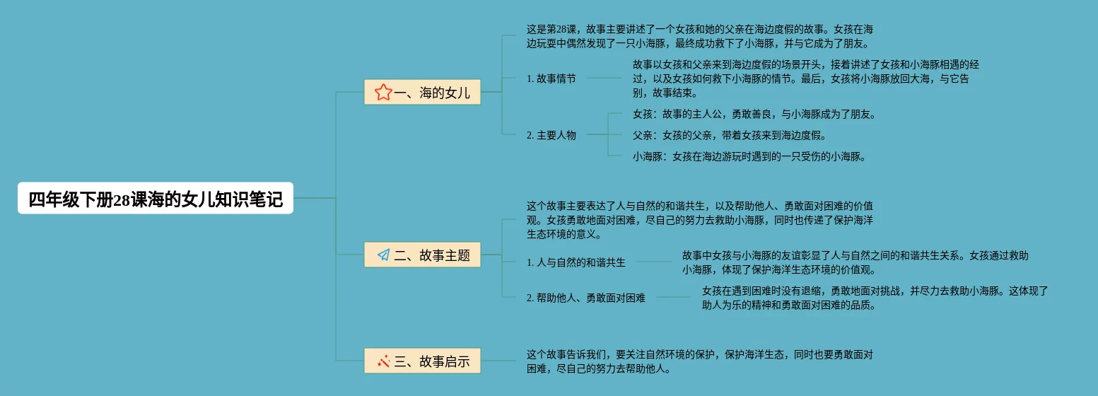 语文四年级下册28课海的女儿思维导图(21张值得收藏)
