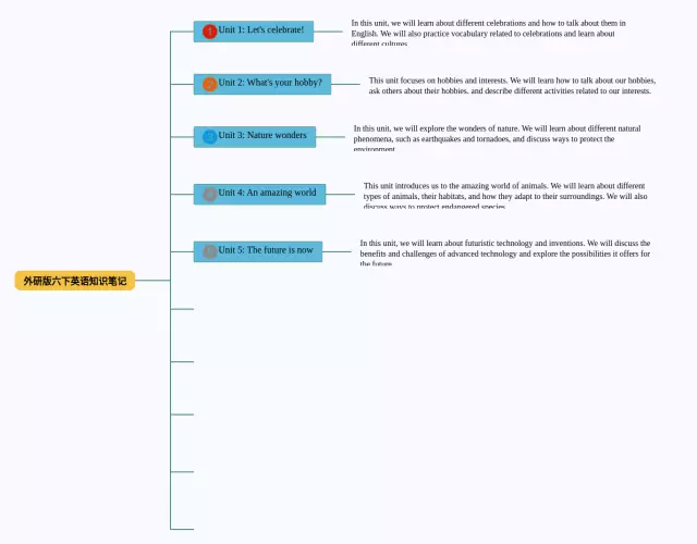 外研版六下思维导图合集,六下外研版英语思维导图,内容涵盖等0个部分,20张附打印高清版,每张思维导图都非常漂亮,每张图片均附打印高清版。