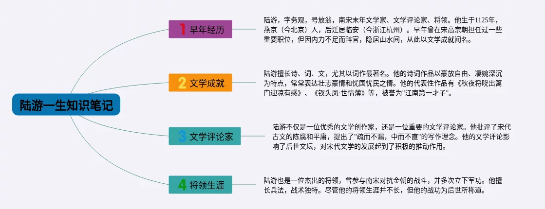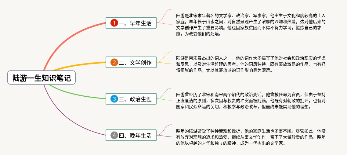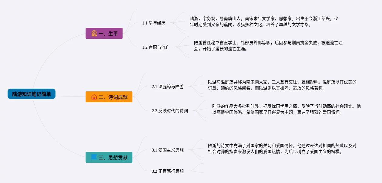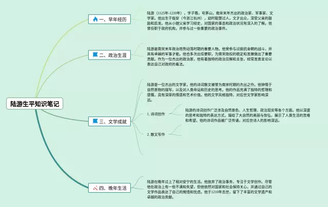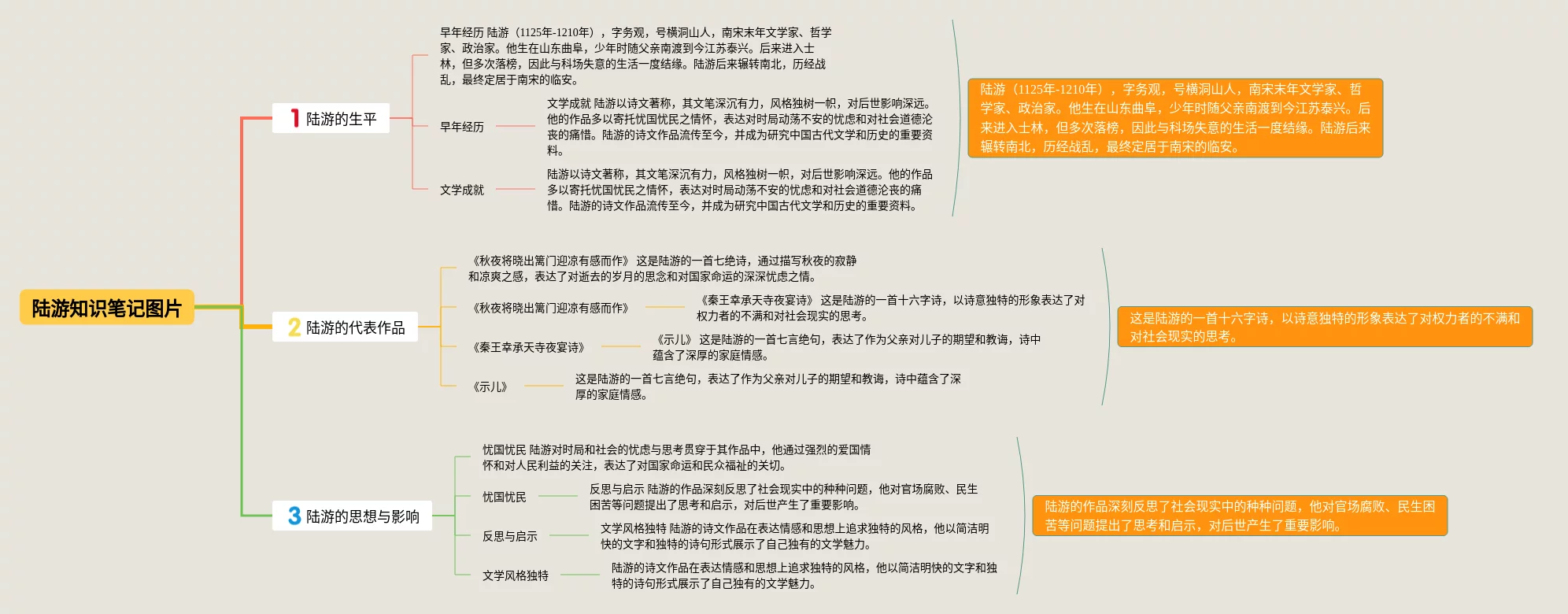 23张陆游思维导图简单汇总,陆游思维导图简单,内容涵盖背景介绍、主要作品、影响与评价等3个要点,23张高清晰可打印,每张思维导图都非常漂亮,每张图片均高清晰可打印。