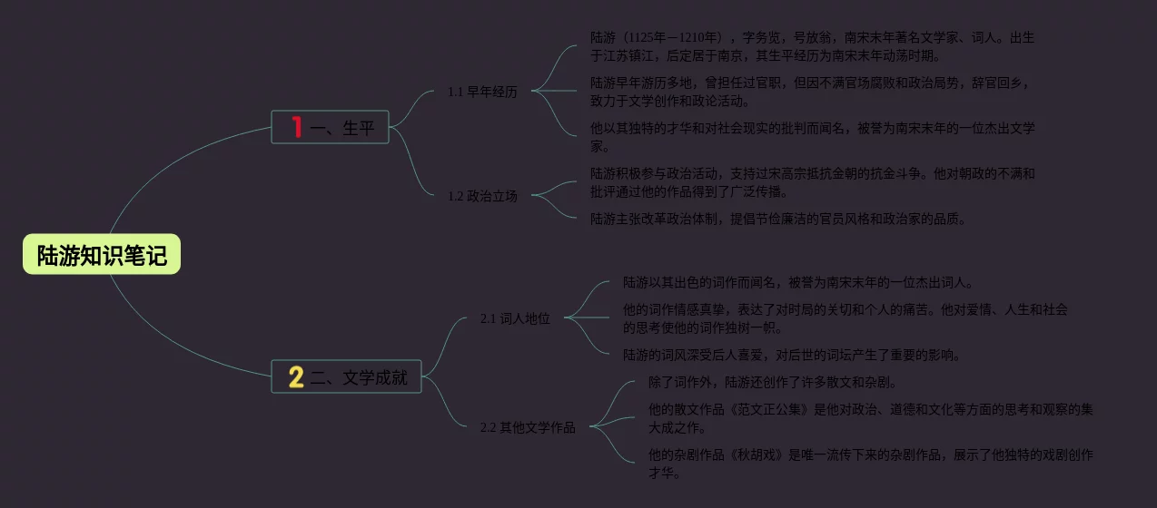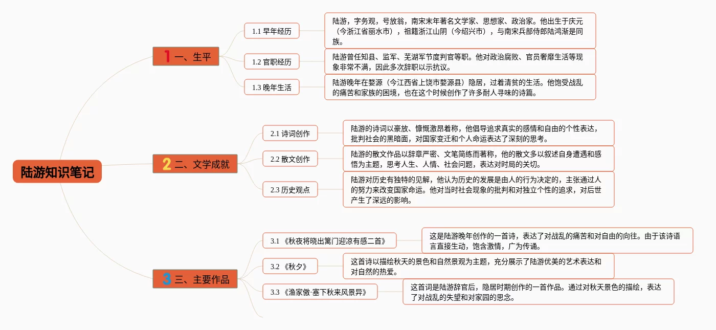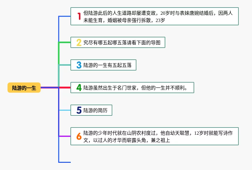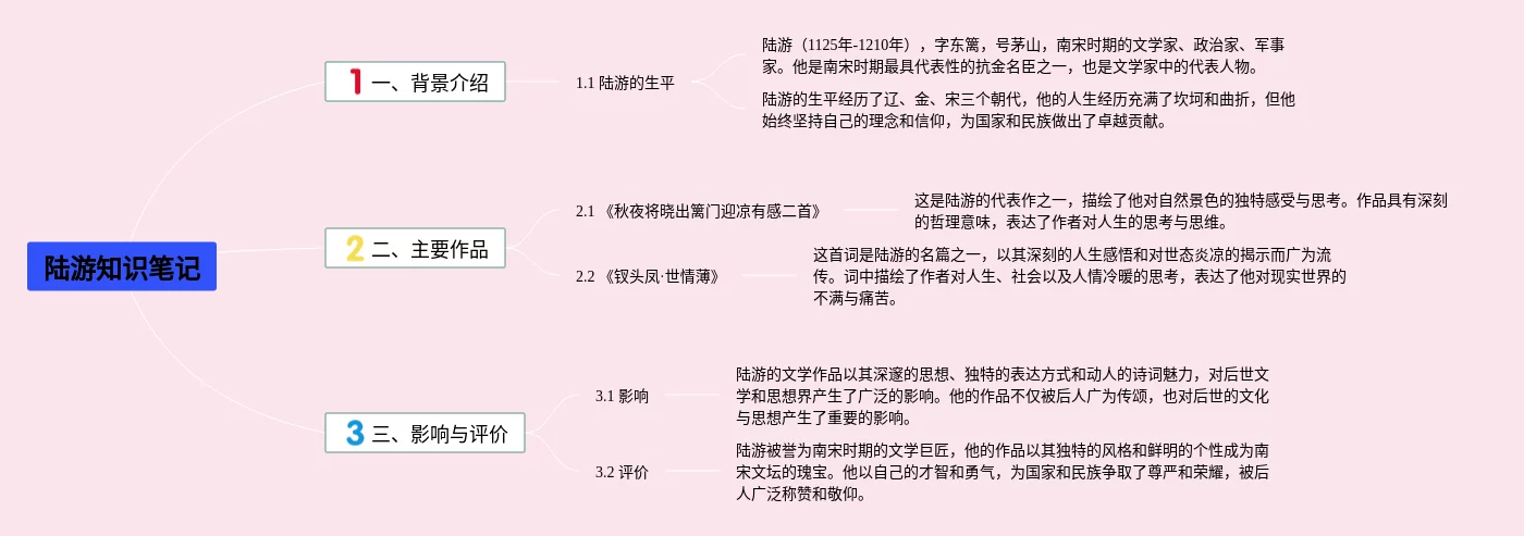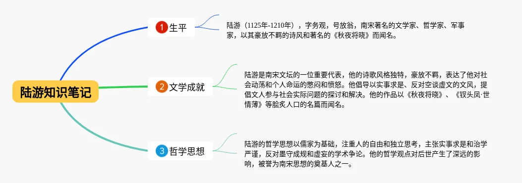 23张陆游思维导图简单汇总,陆游思维导图简单,内容涵盖背景介绍、主要作品、影响与评价等3个要点,23张高清晰可打印,每张思维导图都非常漂亮,每张图片均高清晰可打印。