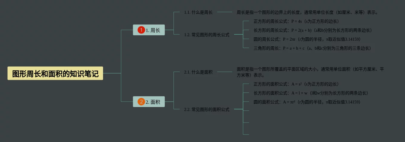 22张三年级数学图形的周长思维导图汇总,三年级数学图形的周长思维导图,内容涵盖1. 周长、2. 面积等2个部分,22张精选版,每张思维导图都非常清晰,每张图片均精选版。