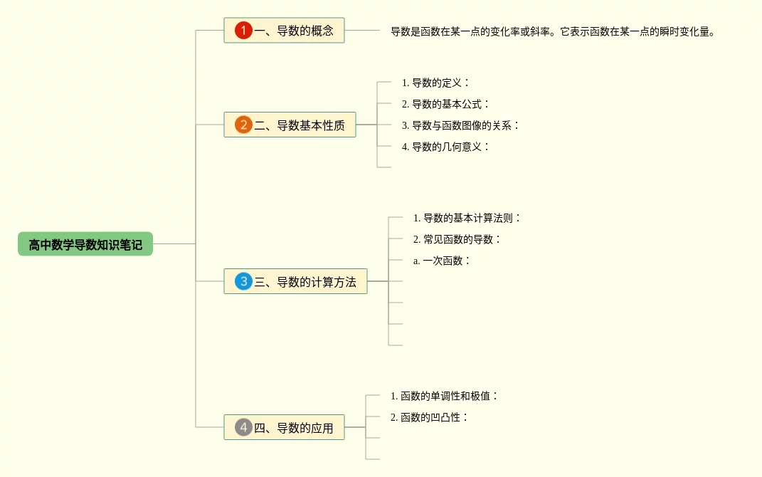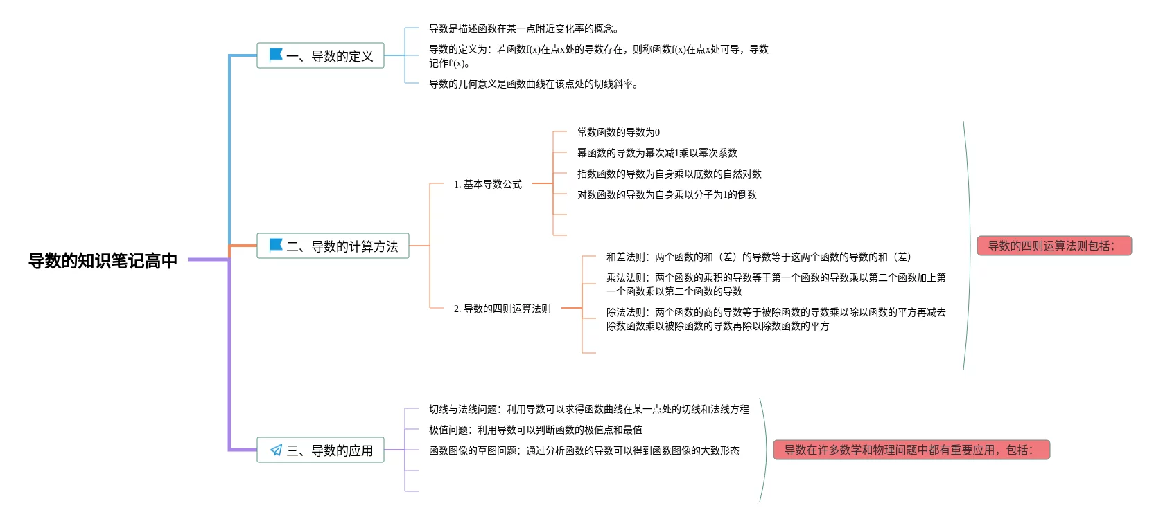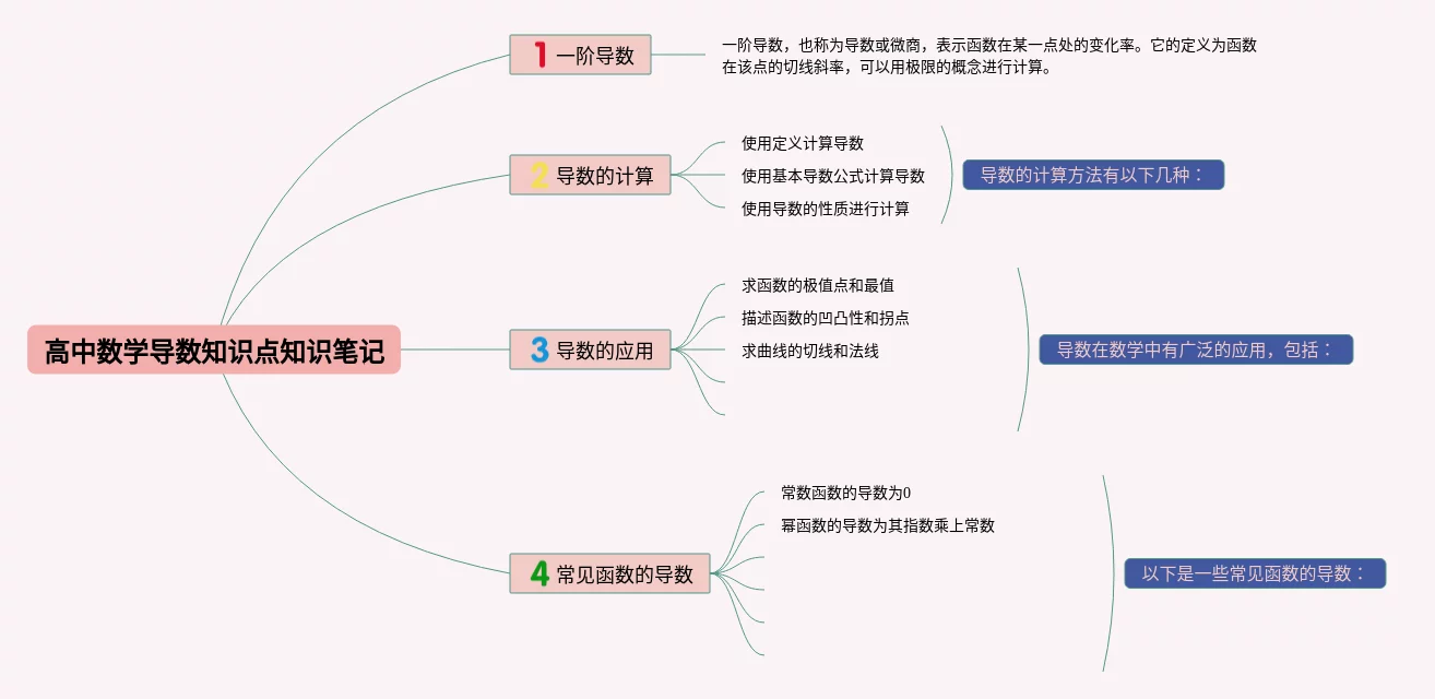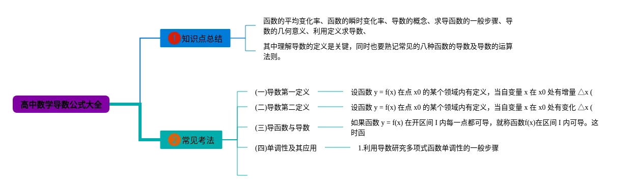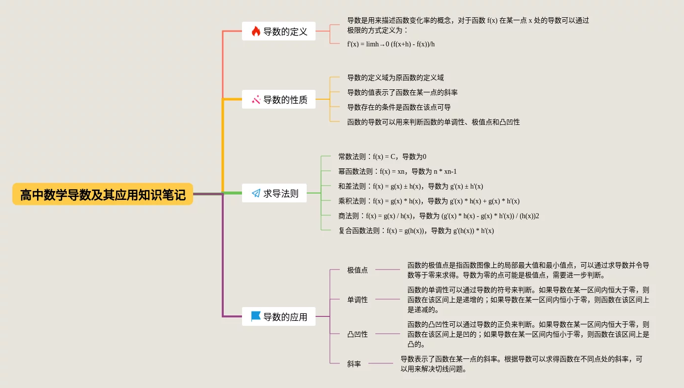 23张高中数学导数的思维导图合集,高中数学导数的思维导图,内容涵盖定义、函数的分类、性质、微积分等4个方面,23张值得收藏,每张思维导图都非常漂亮,每张图片均值得收藏。