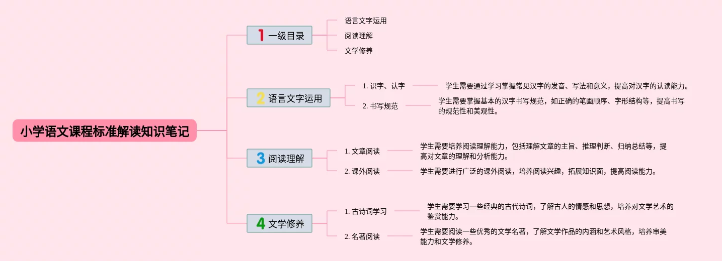 22张小学语文课程标准解读思维导图汇总,小学语文课程标准解读思维导图,内容涵盖一级目录、语言文字运用、文学常识、写作等4个部分,22张可下载,每张思维导图都非常清晰,每张图片均可下载。