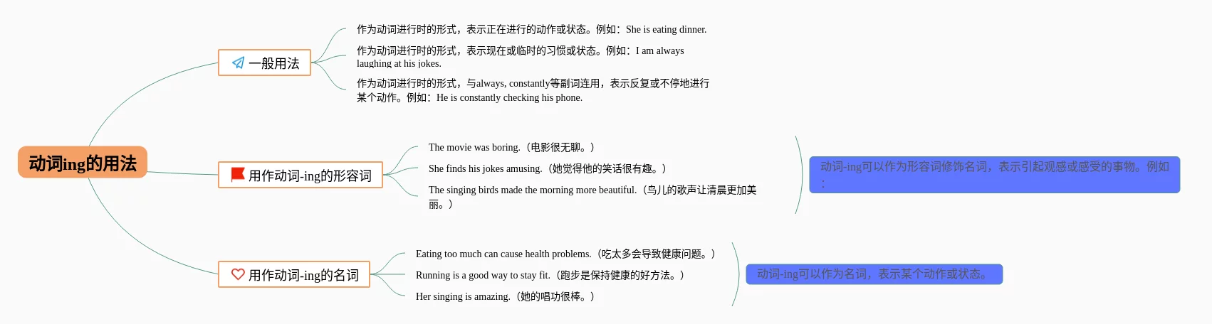 24张动词ing形式的思维导图汇总,动词ing形式的思维导图,内容涵盖一级目录、什么是动词ing形式、动词ing形式的构成方法、动词ing形式的用法、用作动词等8个知识点,24张附打印高清版,每张思维导图都非常简单,每张图片均附打印高清版。