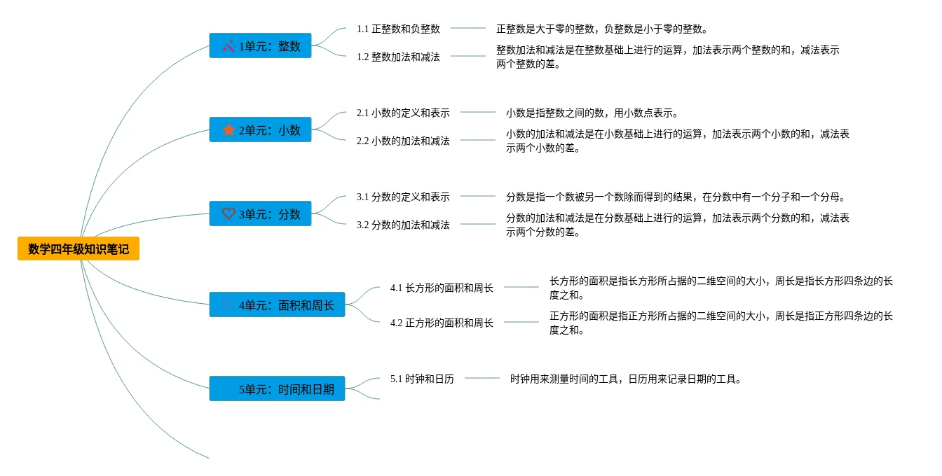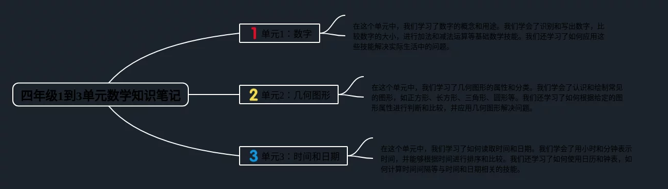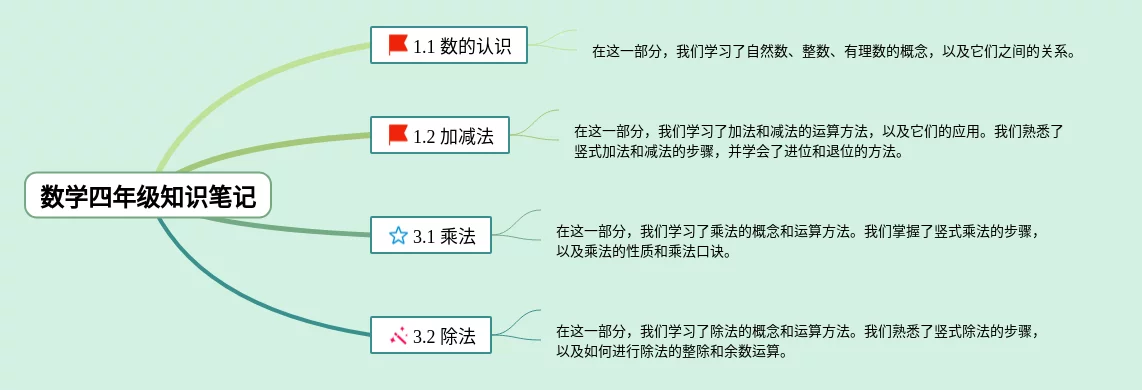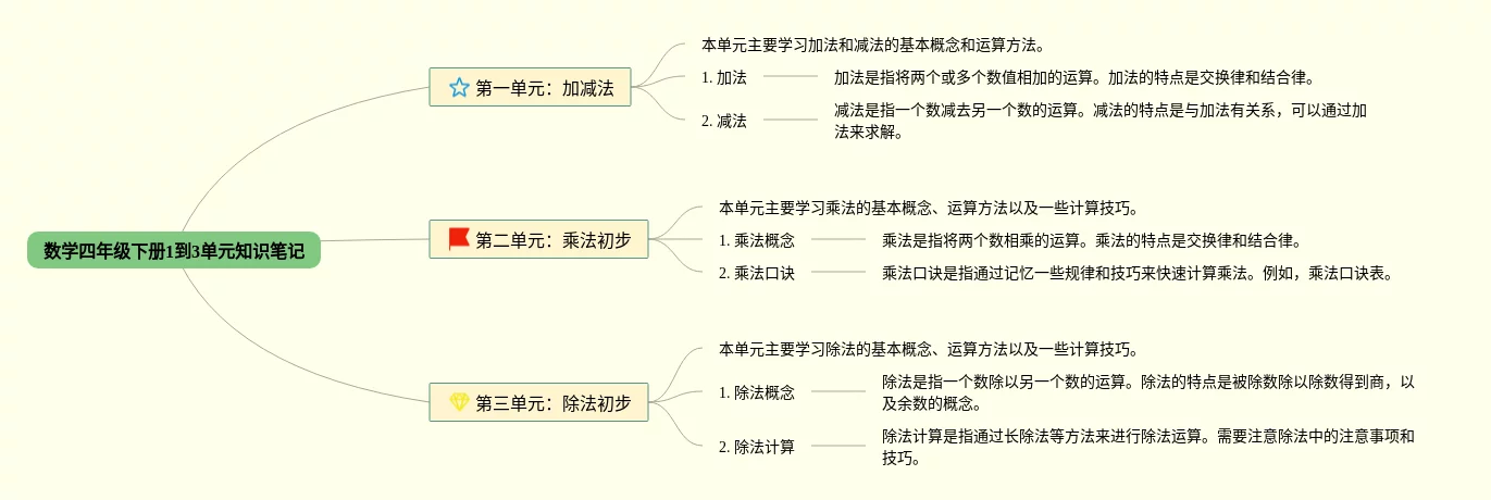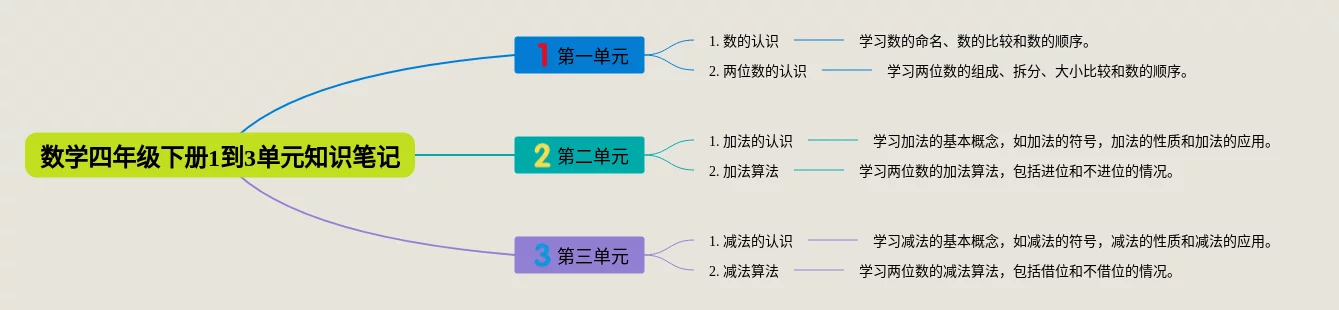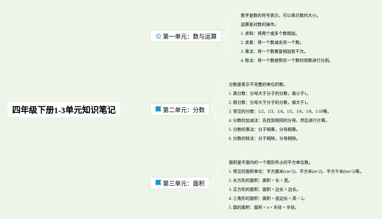 1一3单元数学四年级思维导图(24张可打印)