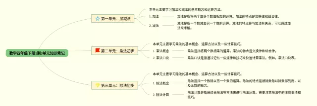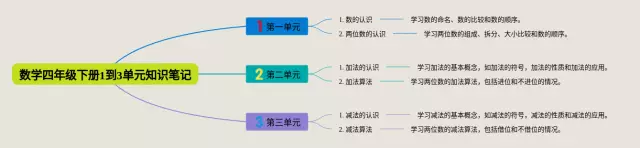 24张1一3单元数学四年级思维导图合集,1一3单元数学四年级思维导图,内容涵盖第一单元、第二单元、第三单元等3个要点,24张可打印,每张思维导图都非常简单,每张图片均可打印。