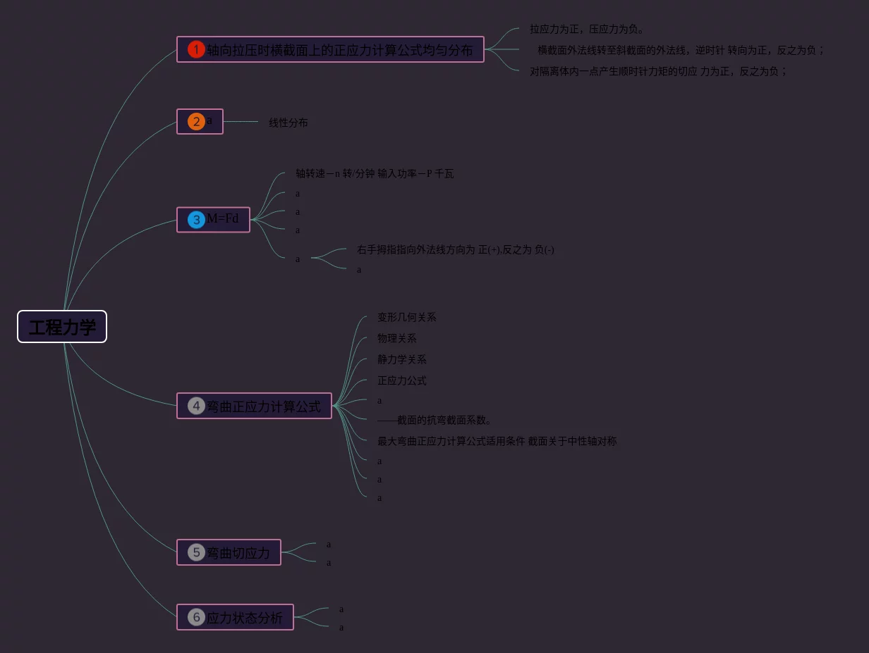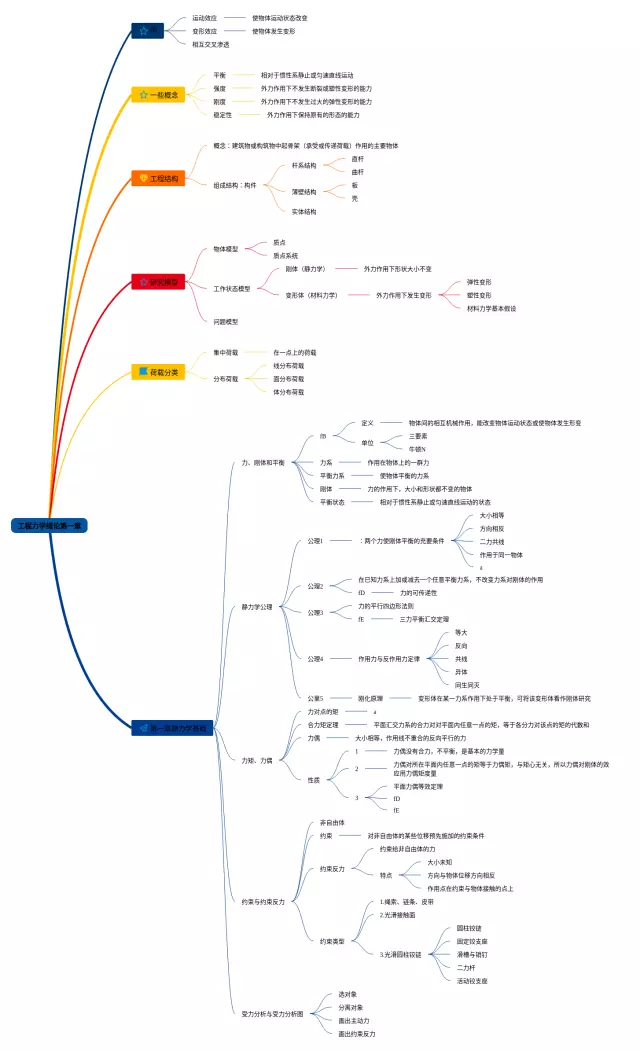 24张大一工程力学思维导图汇总,大一工程力学思维导图,内容涵盖弯曲正应力计算公式、弯曲切应力、应力状态分析等3个部分,24张可打印,每张思维导图都非常漂亮,每张图片均可打印。