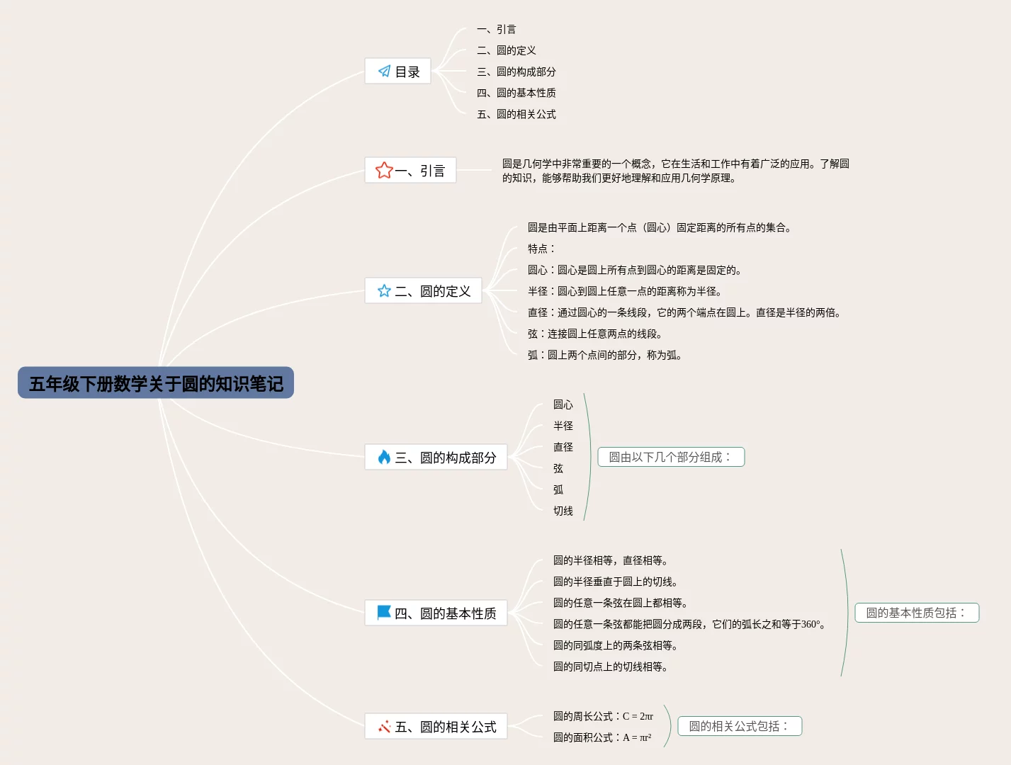 五年级下册数学苏教版圆的思维导图(25张附下载)