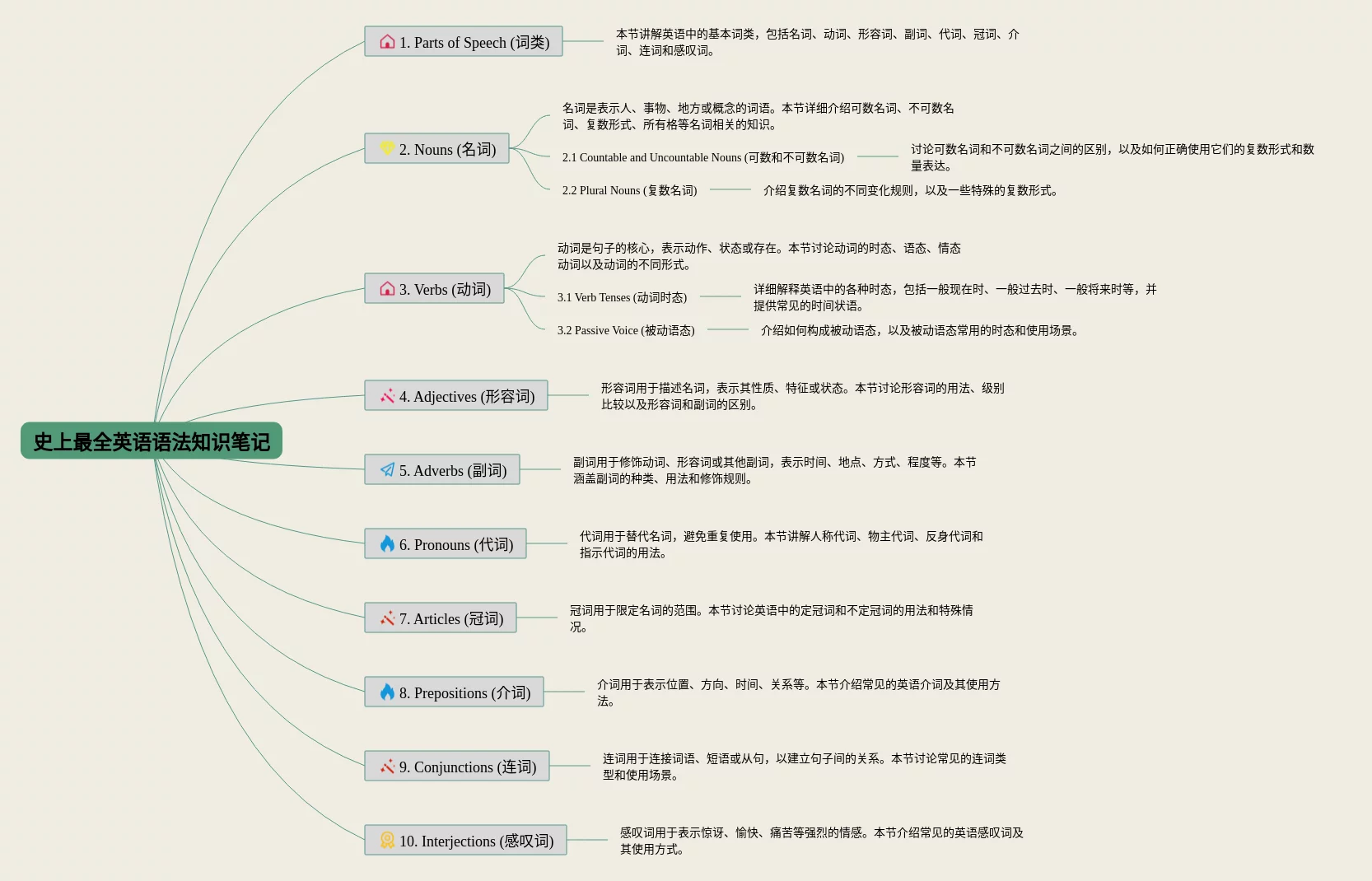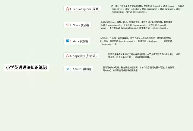 23张小学英语语法思维导图最全汇总汇总,小学英语语法思维导图最全汇总,内容涵盖名词、代词、冠词、动词、介词等9个要点,23张可打印,每张思维导图都非常漂亮,每张图片均可打印。