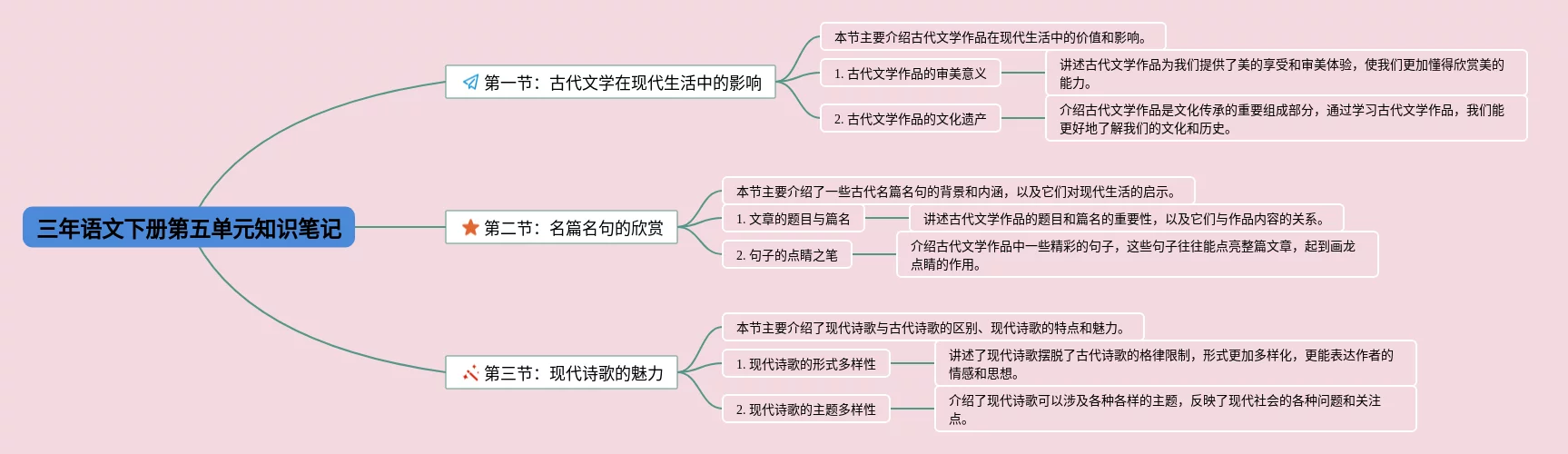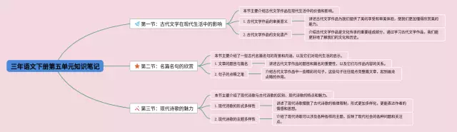 21张三年思维导图第五单元汇总,三年思维导图第五单元,内容涵盖1.可爱的生灵、2.寓言故事、3.中华优秀传统文化、4.观察与发现、5.大胆想象等8个部分,21张可打印,每张思维导图都非常漂亮,每张图片均可打印。