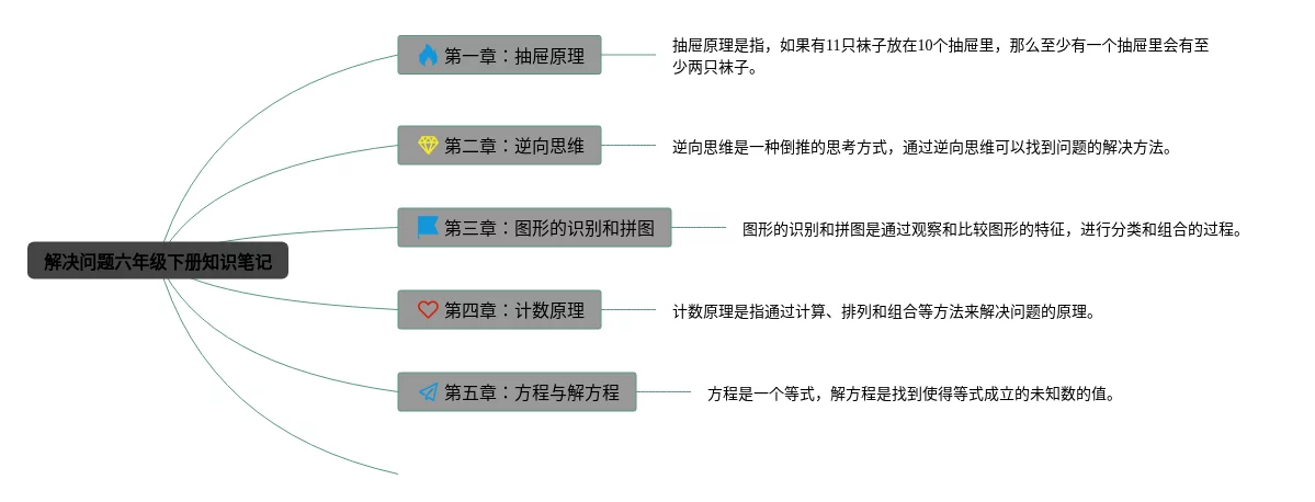 21张六年级下册解决问题思维导图汇总,六年级下册解决问题思维导图,内容涵盖第四章比例、第五章数学广角——鸽巢问题、特点、概括、四个阶段等13个知识点,21张高清晰可打印,每张思维导图都非常简单,每张图片均高清晰可打印。