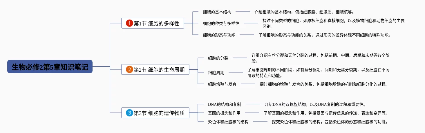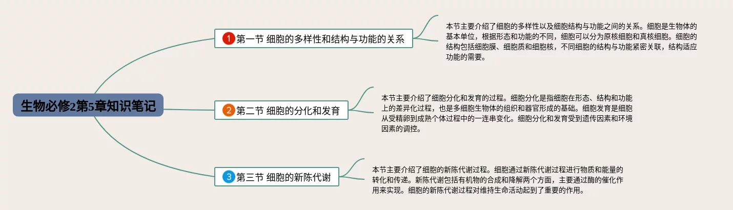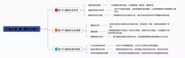 25张生物第5章思维导图合集,生物第5章思维导图,内容涵盖第1节 细胞的多样性、第2节 细胞的生命周期、第3节 细胞的遗传物质等3个部分,25张可下载,每张思维导图都非常漂亮,每张图片均可下载。