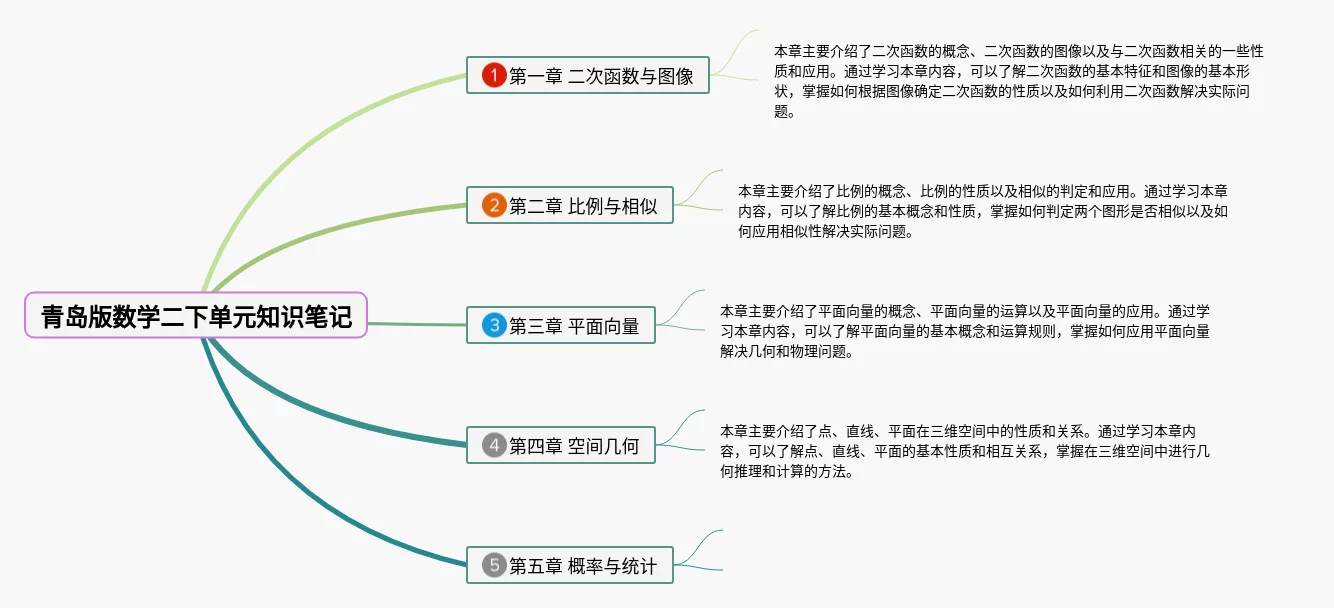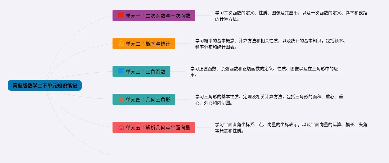 20张青岛版数学二下单元思维导图合集,青岛版数学二下单元思维导图,内容涵盖基本概念、代数式和方程式、函数和图像简介、平方根与实数等4个部分,20张高清版,每张思维导图都非常清晰,每张图片均高清版。