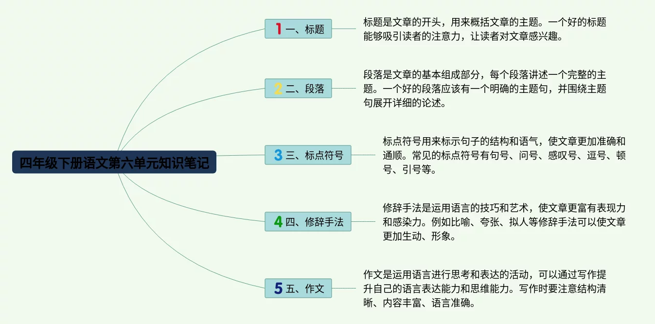 语文四年级下册第六单元思维导图简单(24张高清晰可打印)